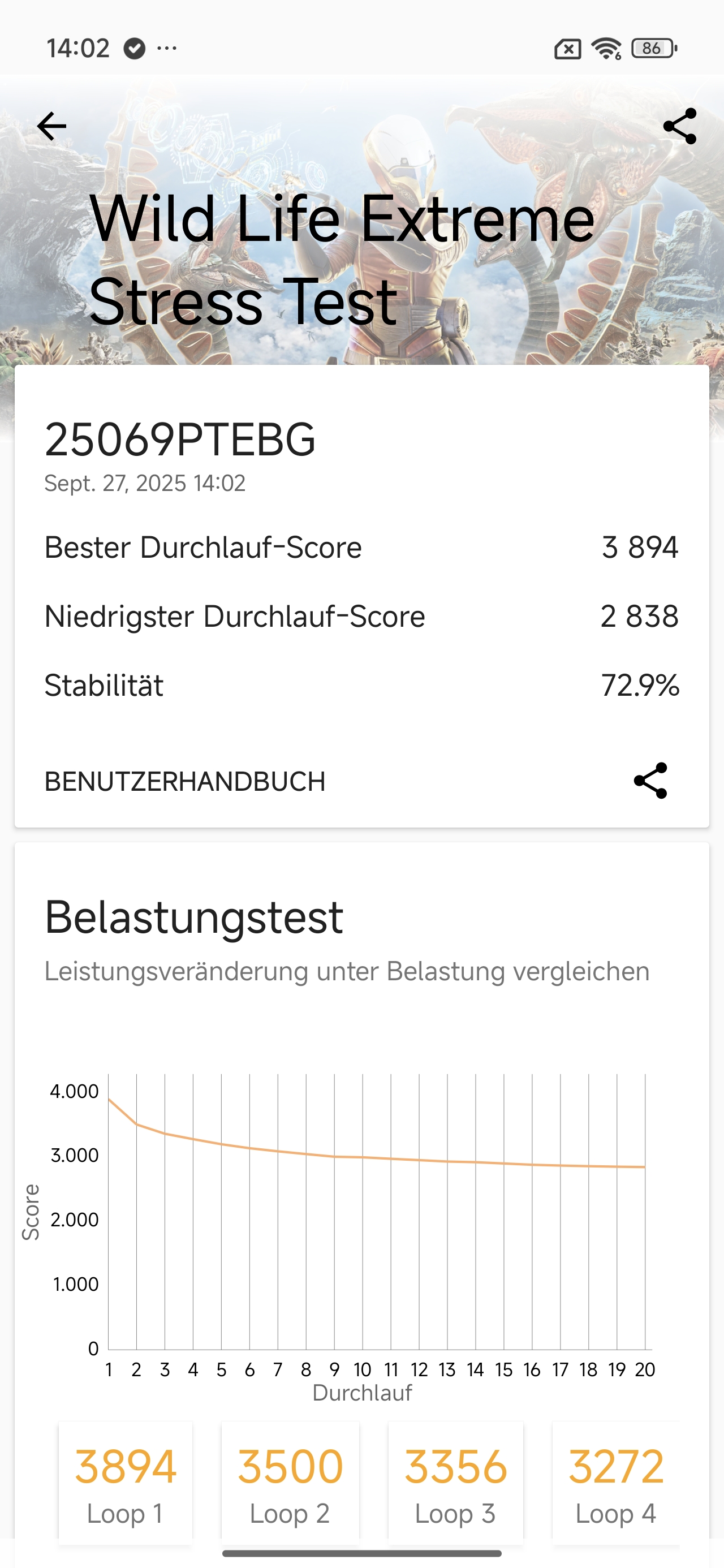 Bei so viel Leistung ist natürlich auch das Hitzemanagement ein Thema. Unter konstanter Last zeigt sich das Smartphone ausdauernd. Nach einiger Zeit brechen sowohl die CPU- als auch die GPU-Leistung um rund 30% ein. Diese Werte sind zwar etwas schlechter als beim Poco X7 Pro, aber insgesamt noch in Ordnung.