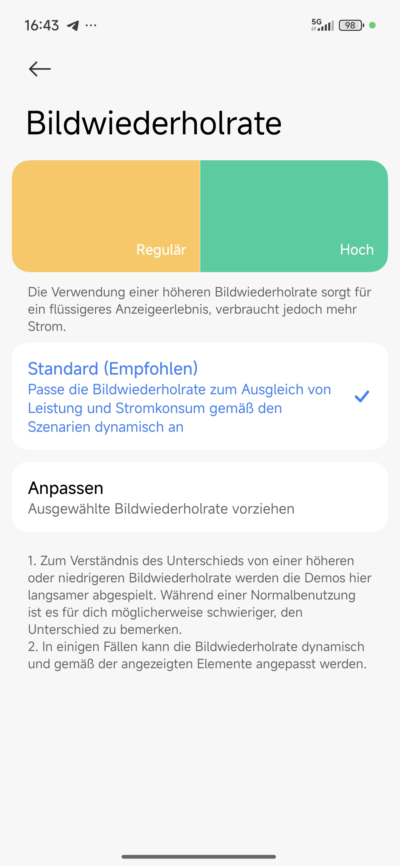 Besonders erfreulich für empfindliche Nutzer ist die hohe PWM-Frequenz von bis zu 3840Hz. Für das Streaming von Inhalten sind HDR10+, Dolby Vision und Widevine L1 mit an Bord. Gamer profitieren zudem von einer hohen Touch-Abtastrate von bis zu 2560Hz. In den Systemeinstellungen finden sich die üblichen Optionen: Die Farbwiedergabe kann individuell angepasst werden und ein Lese- sowie ein Dunkelmodus sind ebenfalls vorhanden. Eine Möglichkeit, die Auflösung manuell zu reduzieren, fehlt jedoch. Ein klarer Kritikpunkt bleibt die Einschränkung des Always-On-Displays. Im Gegensatz zum Xiaomi 15T Pro kann dieses nicht dauerhaft eingeschaltet bleiben, sondern aktiviert sich nur für wenige Sekunden nach Berührung des Bildschirms.