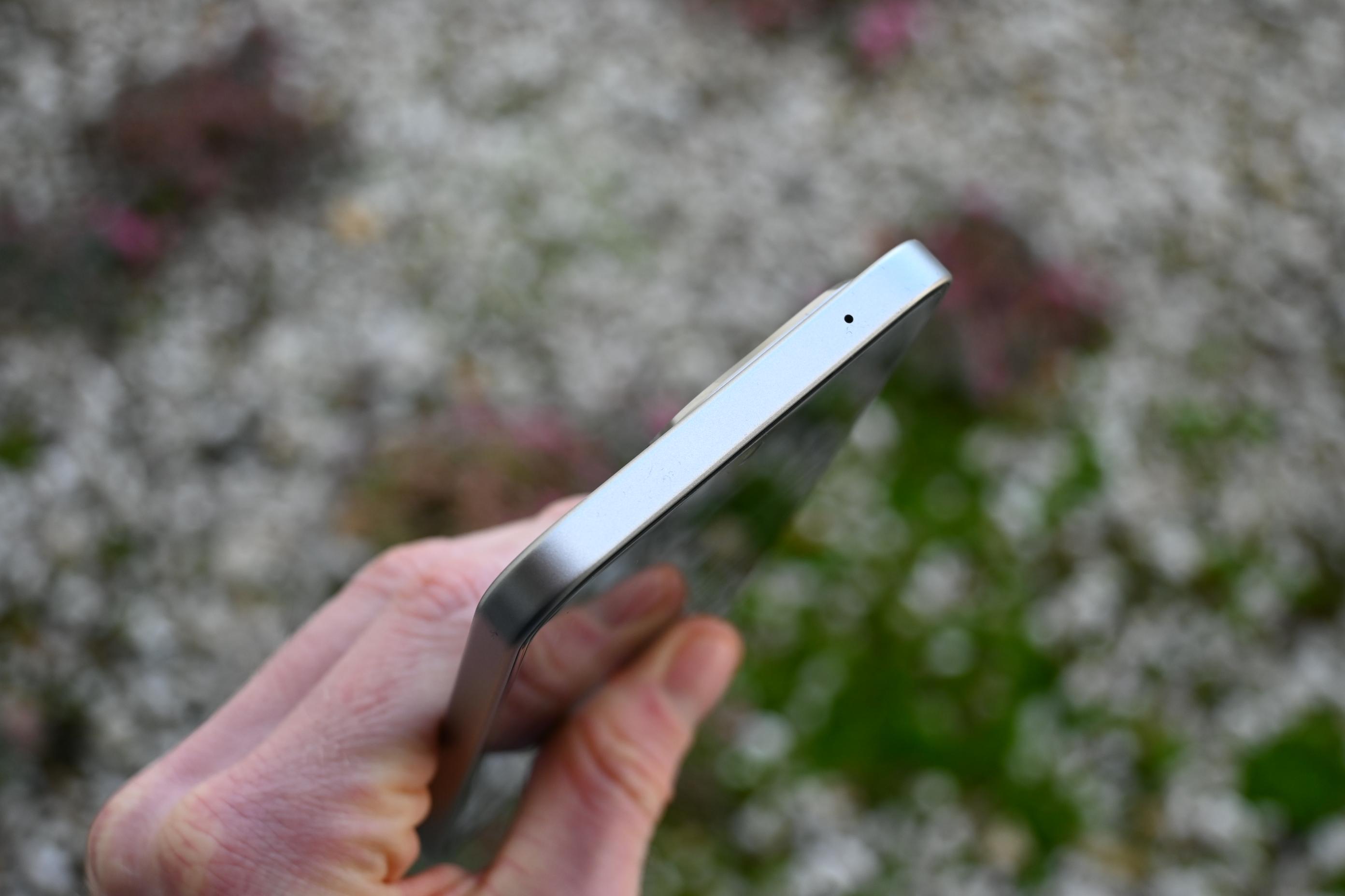 Wie schon der Vorgänger setzt auch das 15T auf ein eher kantiges Design mit harten Übergängen vom Rahmen zum Display und zur Rückseite. Das Gerät ist daher kein Handschmeichler. Dafür wirkt die Front mit ihrem flachen Display und den erfreulich schmalen Rändern zeitgemäß. Diese messen an den Seiten und oben knapp 3 Millimeter, lediglich am unteren Rand sind es unwesentlich mehr. Die Frontkamera sitzt in einer winzigen Punch-Hole-Notch, die mit 4 Millimetern Durchmesser bei der Bedienung kaum stört. Geschützt wird die Vorderseite von Corning Gorilla Glass 7i.