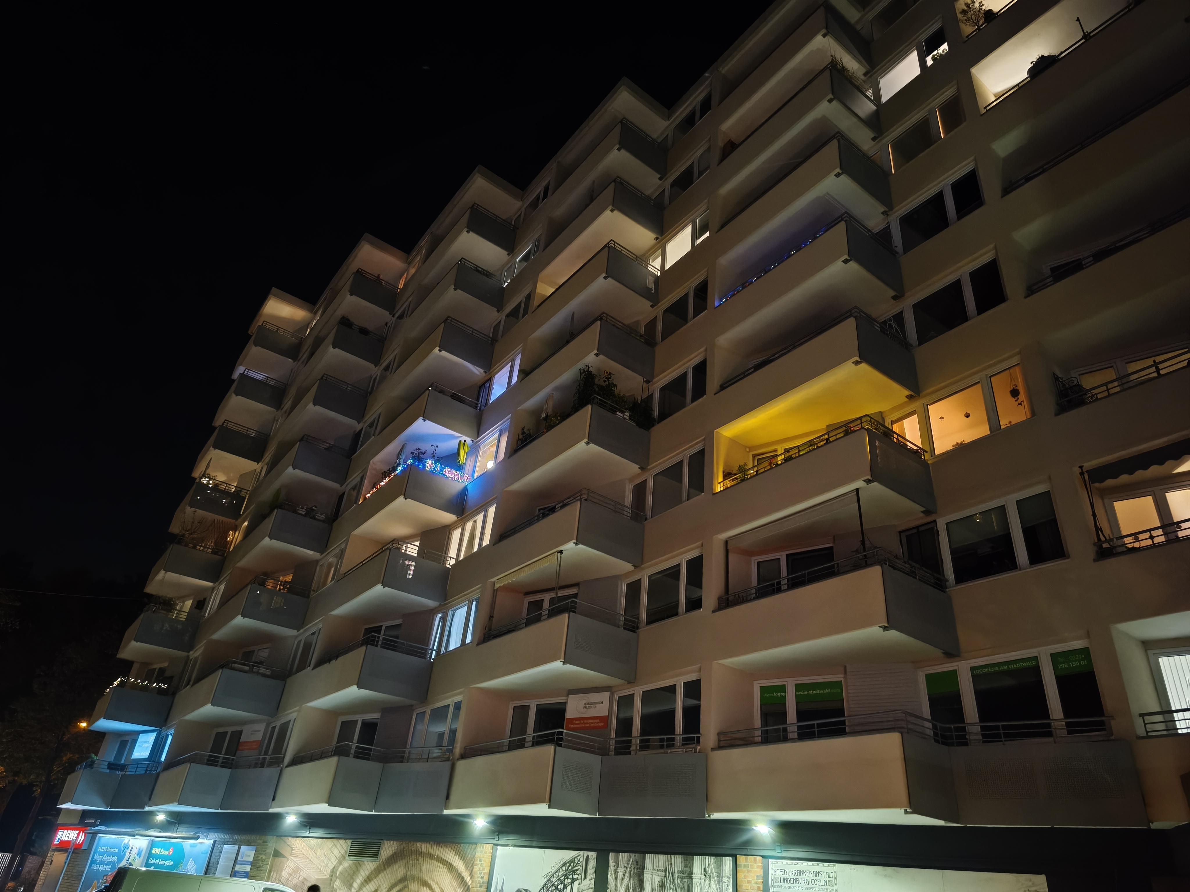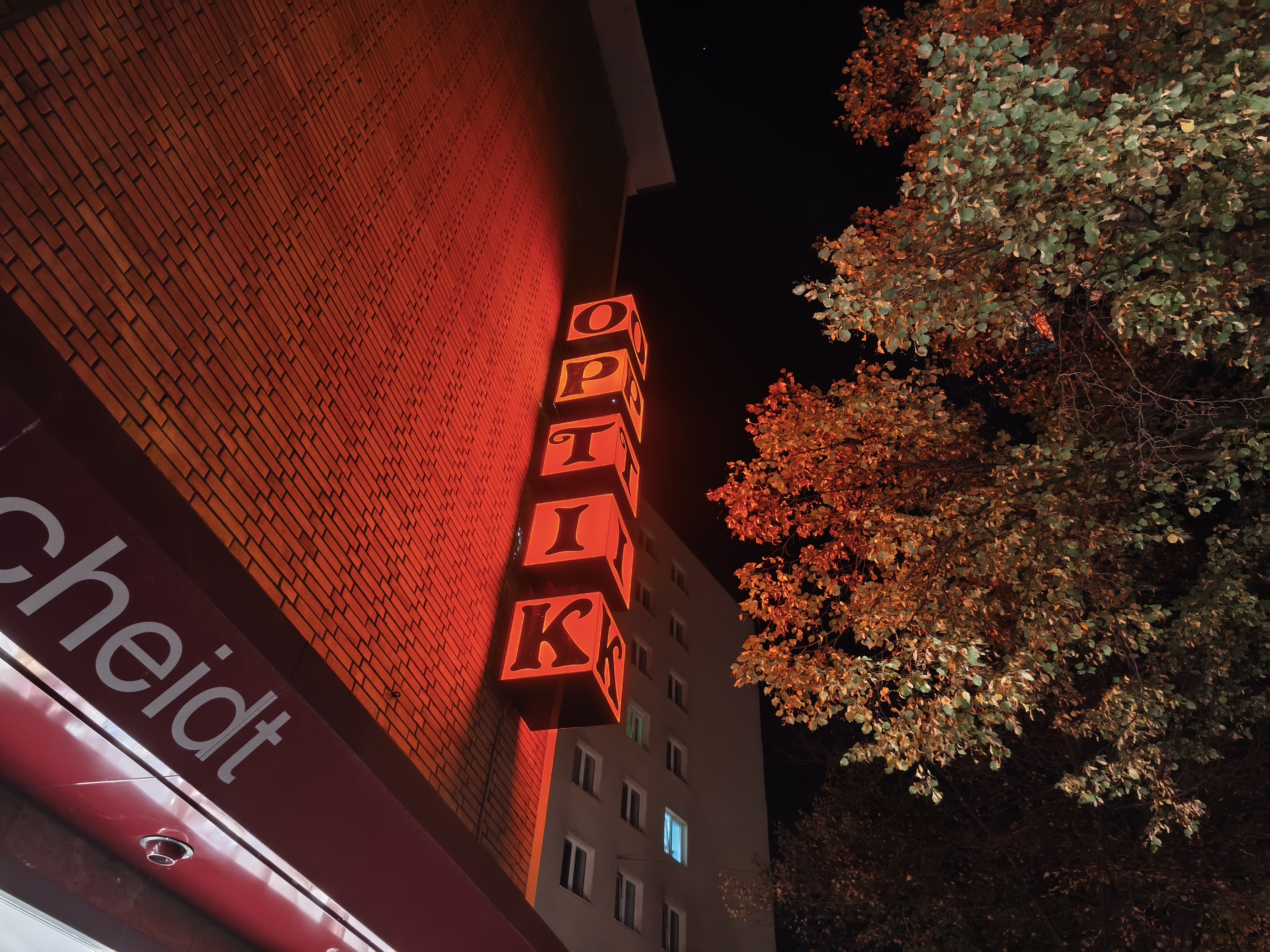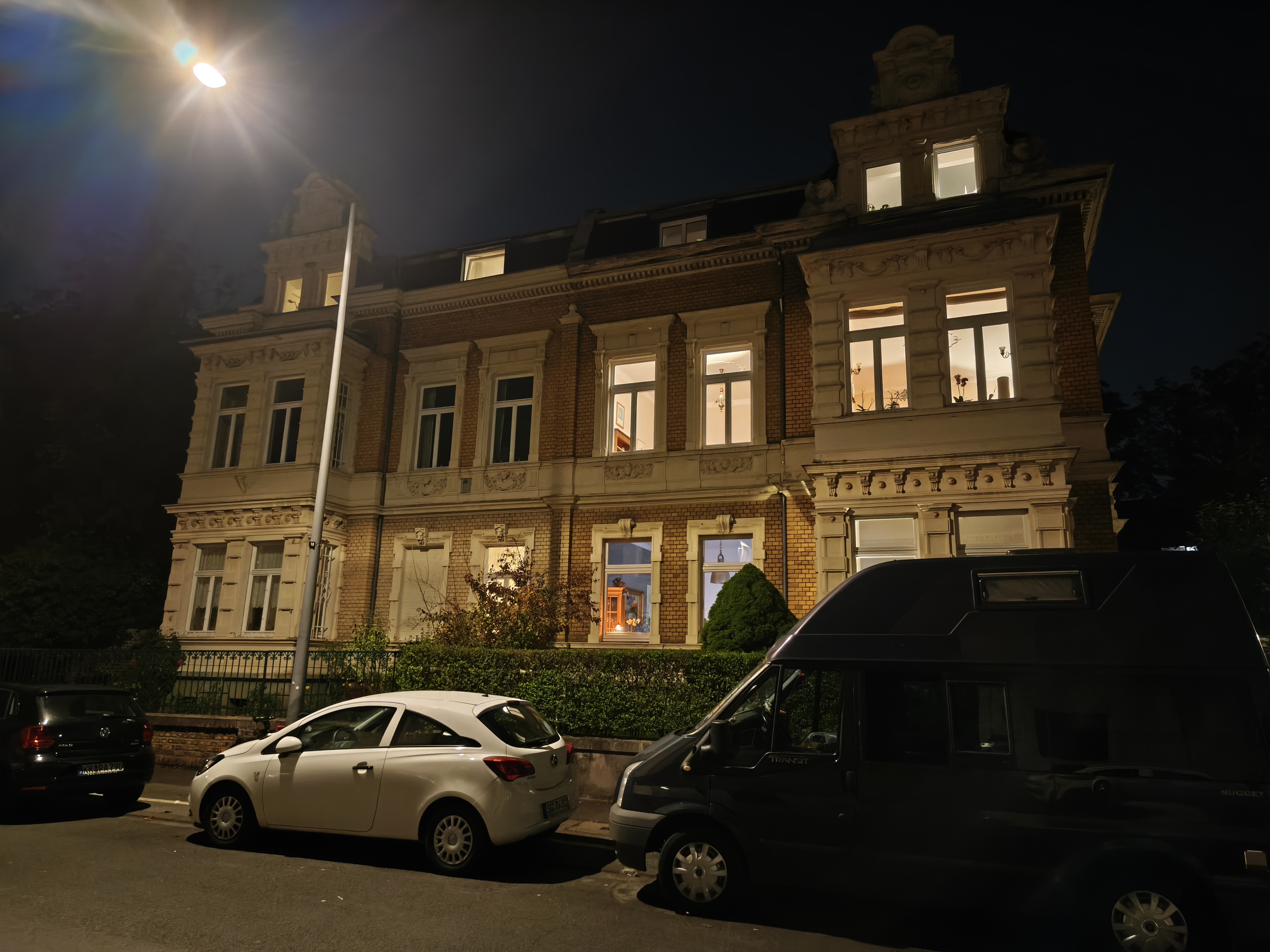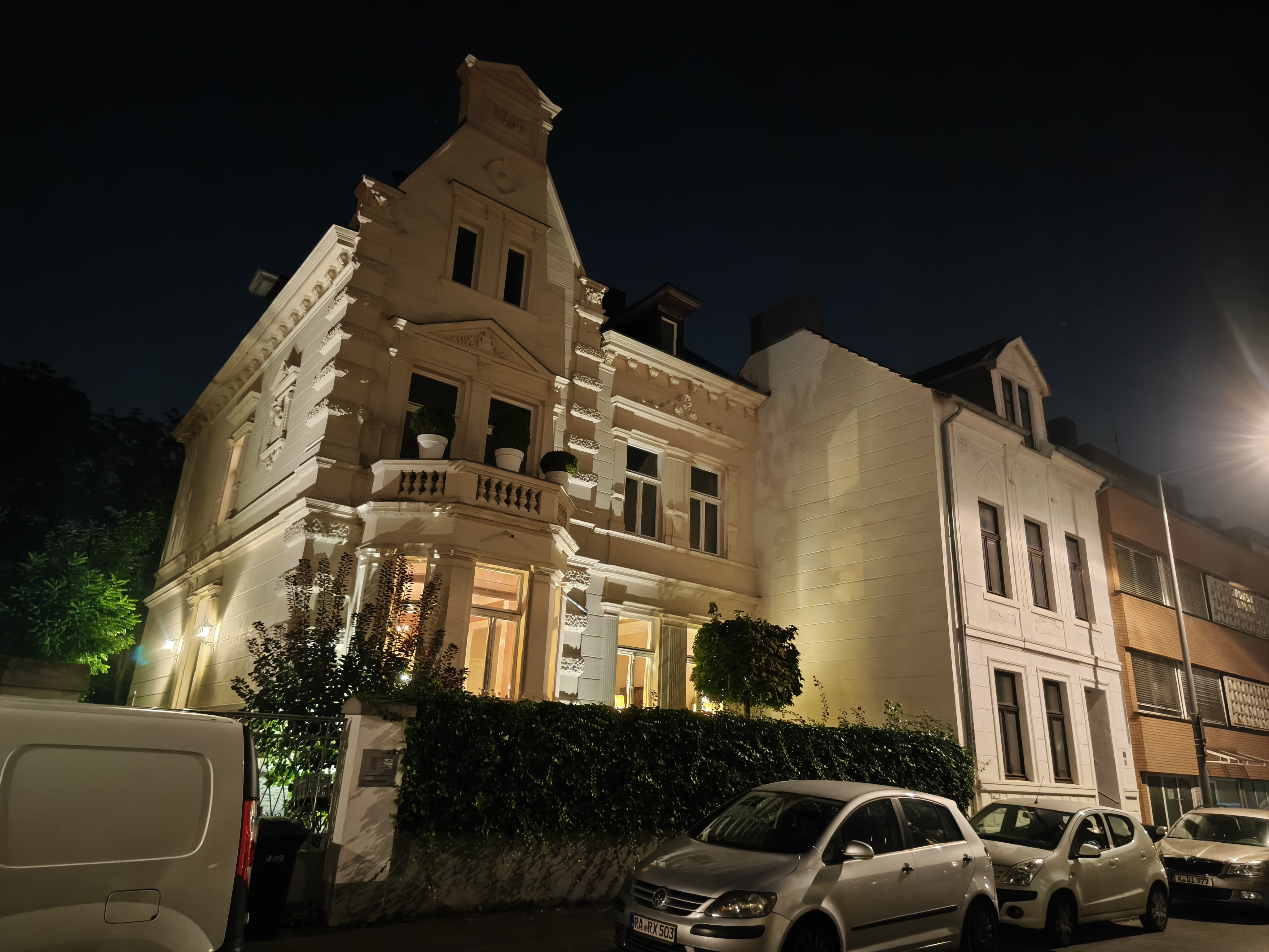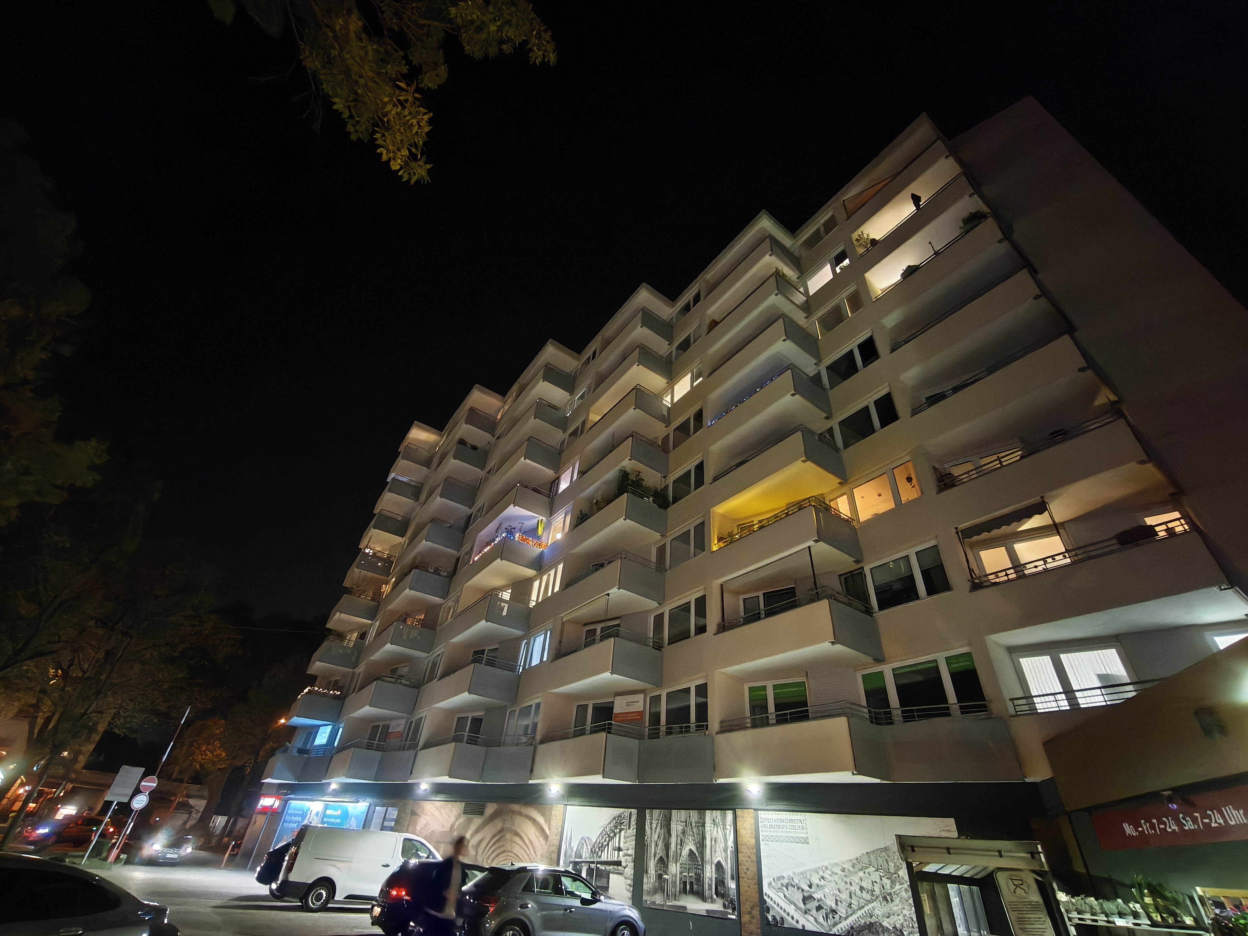 Für ein Mittelklasse-Smartphone schlägt sich die Hauptkamera bei Nacht ordentlich. Die Aufnahmen bieten eine gute Menge an Details und eine ansprechende Schärfe. Schwächen zeigen sich jedoch bei der Dynamik, die im Vergleich zum Pro-Modell sichtbar abfällt. Dunkle Bildbereiche werden weniger gut durchgezeichnet und helle Lichtquellen überstrahlen schnell. Dennoch sind die Ergebnisse für diese Preisklasse als gut einzustufen.