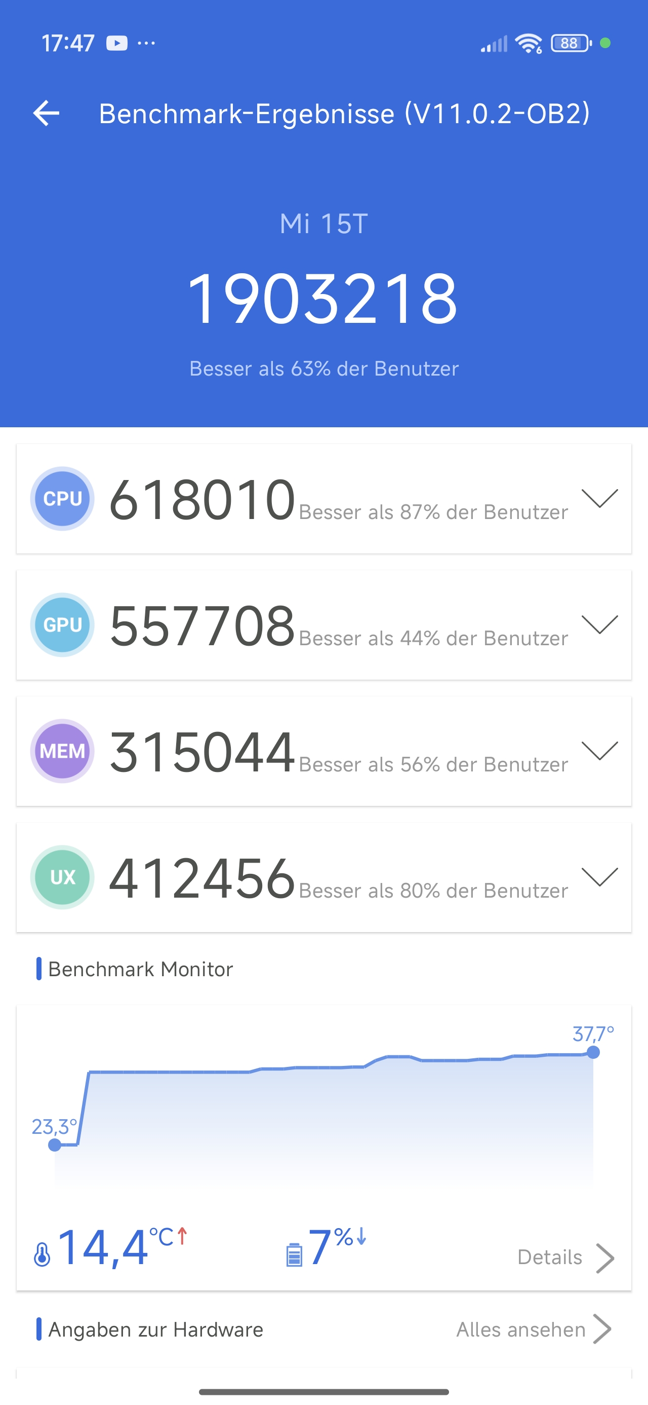 Das Xiaomi 15T ist ein schnelles Smartphone. Allerdings sind wir von Xiaomi mehr gewöhnt: Das Poco X7 Pro bietet die gleiche Leistung für unter 250€ und das Poco F7 im gleichen Preisbereich ist viel leistungstärker.