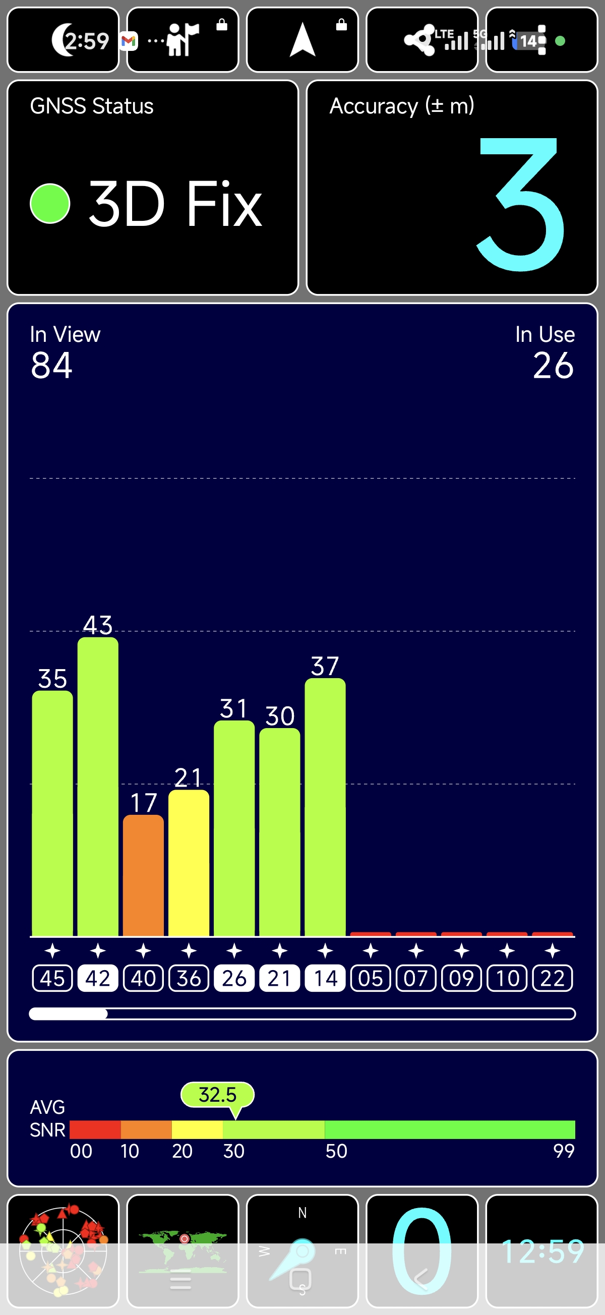 Die Positionsbestimmung erfolgt mittels Dual-GPS und greift auf die Satellitensysteme Beidou, GPS, Galileo, GLONASS, QZSS und NavIC zurück.