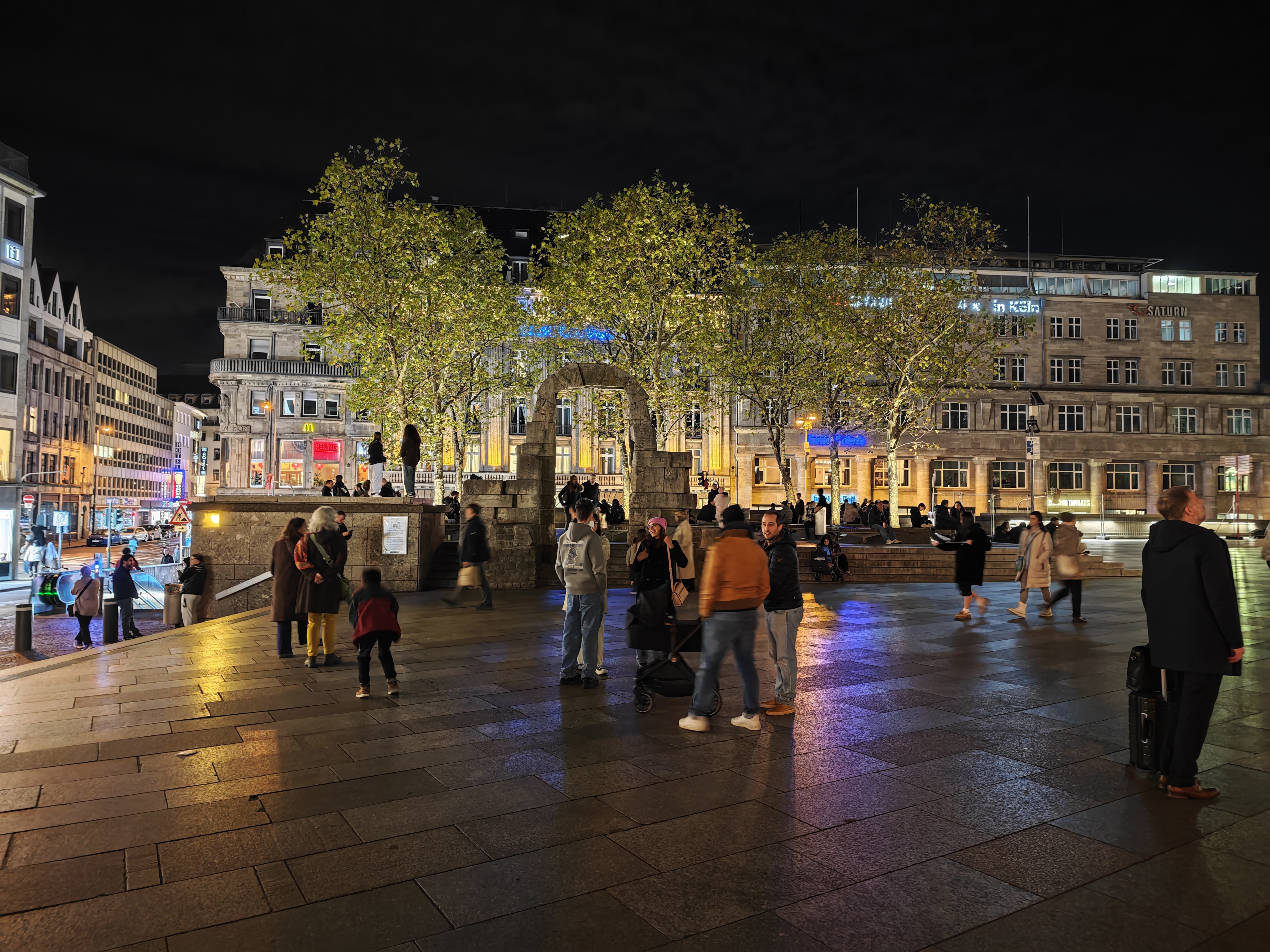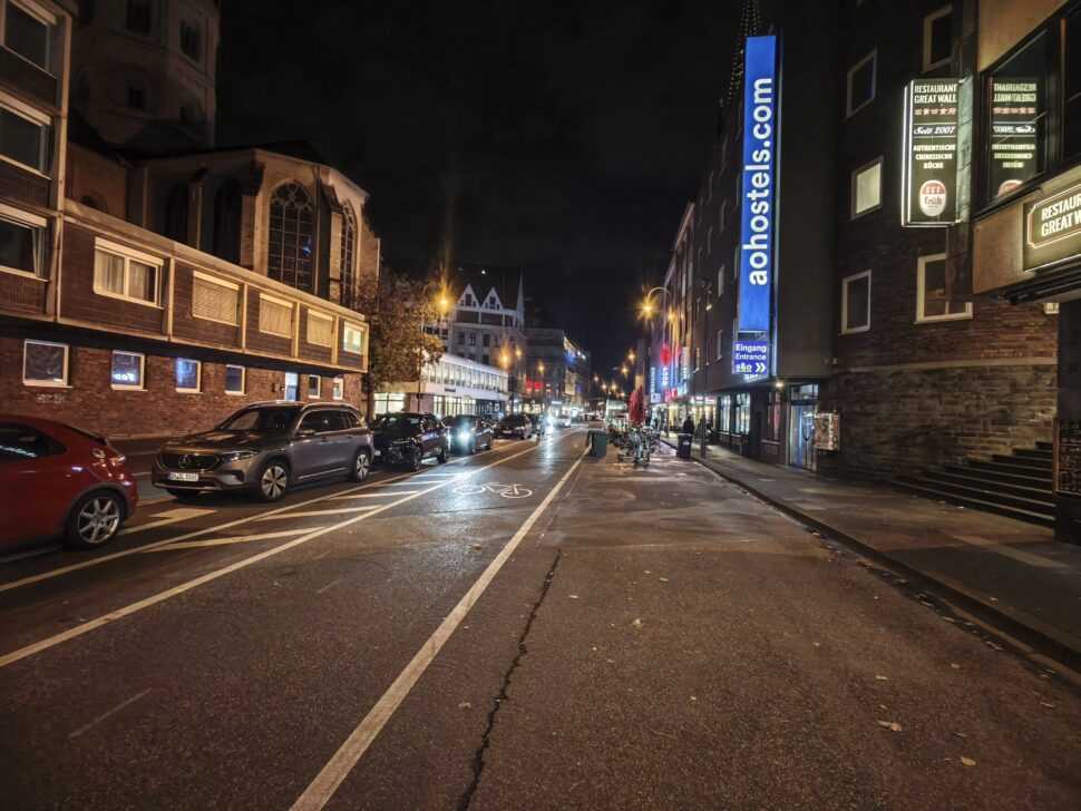 Bei Nachtaufnahmen spielt die Hauptkamera ihre Stärken voll aus und liefert exzellente Ergebnisse. Der Nachtmodus wird dabei völlig automatisch aktiviert. Die Bilder sind gut belichtet, Schatten und Lichter werden sauber herausgearbeitet und es gibt kein sichtbares Rauschen. Einziges Manko: Manchmal könnten die Aufnahmen etwas mehr Kontrast vertragen.