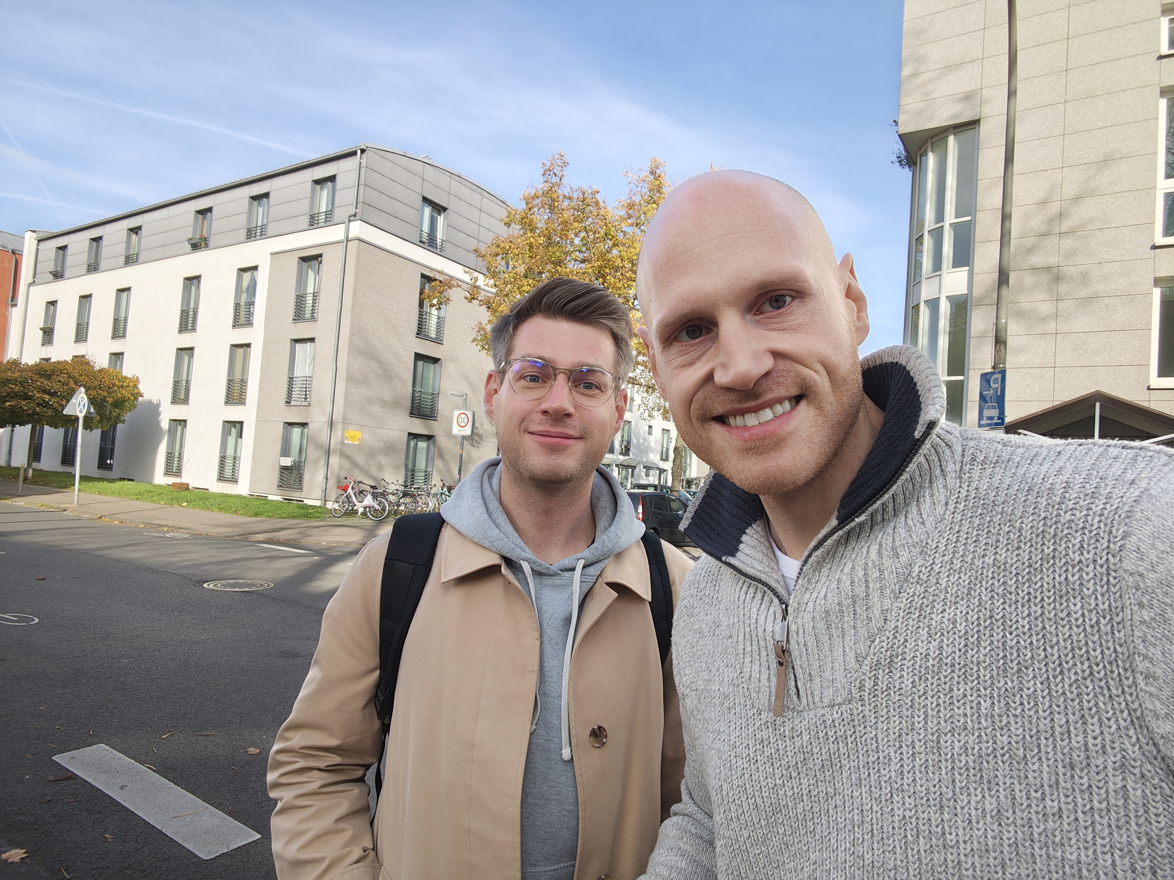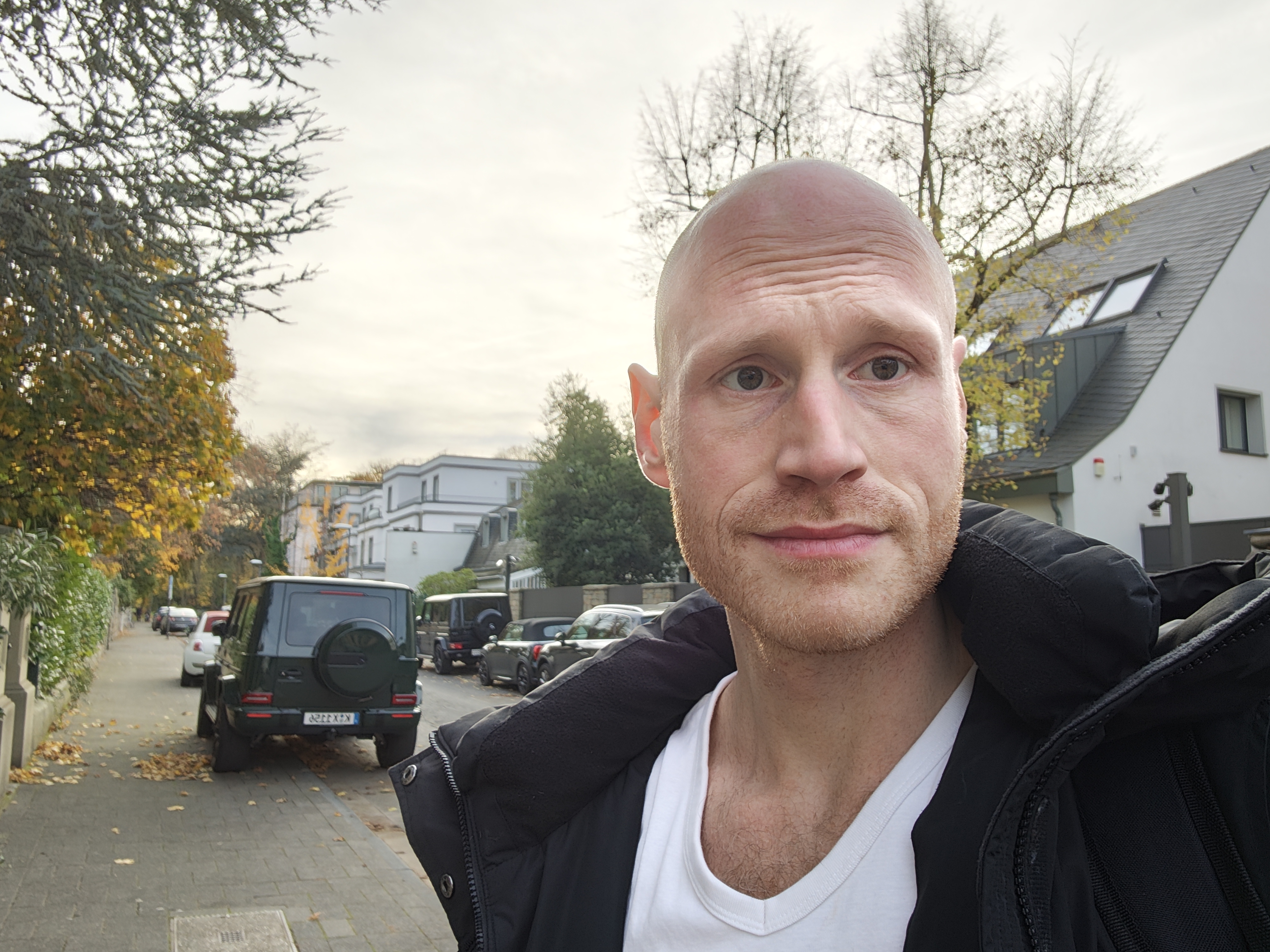 Bei den Selfies müsst ihr klar unterscheiden. Die 50-Megapixel-Frontkamera in der Notch liefert dank Autofokus sehr scharfe, gut belichtete Bilder mit vielen Details. Seine wahre Stärke spielt das Xiaomi 17 Pro Max aber in Kombination mit dem rückseitigen Display aus: Die Hauptkamera produziert exzellente Selbstporträts mit natürlichem Hintergrund-Blur. Das 17 Pro Max ist damit eine absolute Selfie-Maschine! Auch auf Partys bei Nacht lassen sich so tolle Gruppen-Selfies aufnehmen. Die Ultraweitwinkel-Kamera auf der Rückseite ist für Gruppen-Selfies zwar nicht besonders beeindruckend, aber tut ebenfalls ihren Zweck. Wir empfehlen klar, die Hauptkamera als primäre Selfie-Kamera zu verwenden. Die Ergebnisse suchen ihresgleichen.