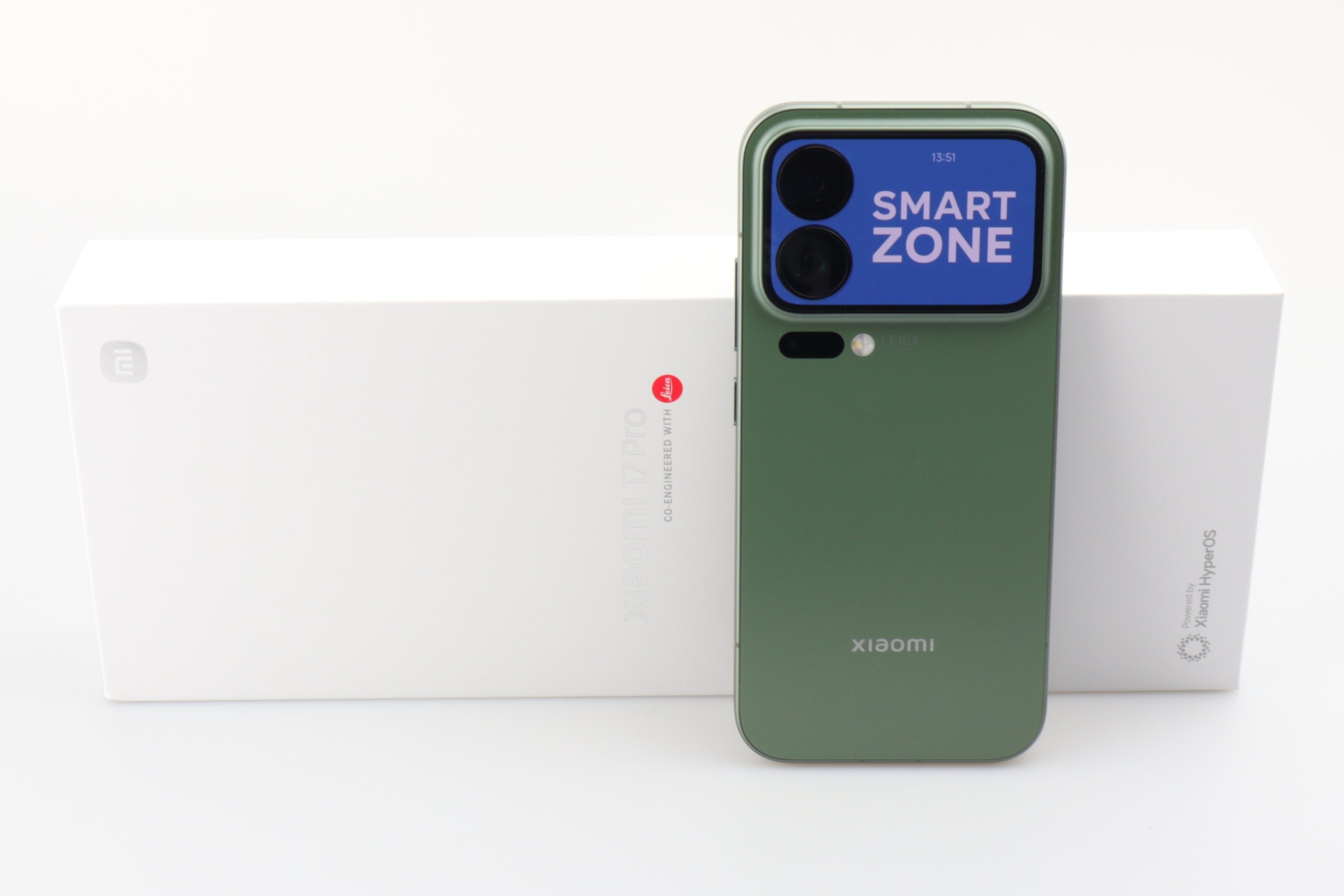 Die Entscheidung, die Kameraeinheit mit Zweitdisplay zu vergrößern und das Xiaomi 16 zu überspringen, ist mutig. Trotzdem werdet ihr das Xiaomi 17 Pro vermutlich nicht mit einem iPhone 17 Pro verwechseln. Zum Glück verzichtet Xiaomi auf komische Designelemente wie ein Kontrast-Glaspanel hinten. Lediglich ein silberner „Xiaomi“- und „Leica“-Schriftzug finden sich hier. Das Xiaomi 17 Pro sieht klasse aus und fühlt sich wie ein High-End-Gerät an. Es ist in den Farben Schwarz, Weiß, Lila und Grün verfügbar – allesamt in matten Farben mit Glasrückseite.