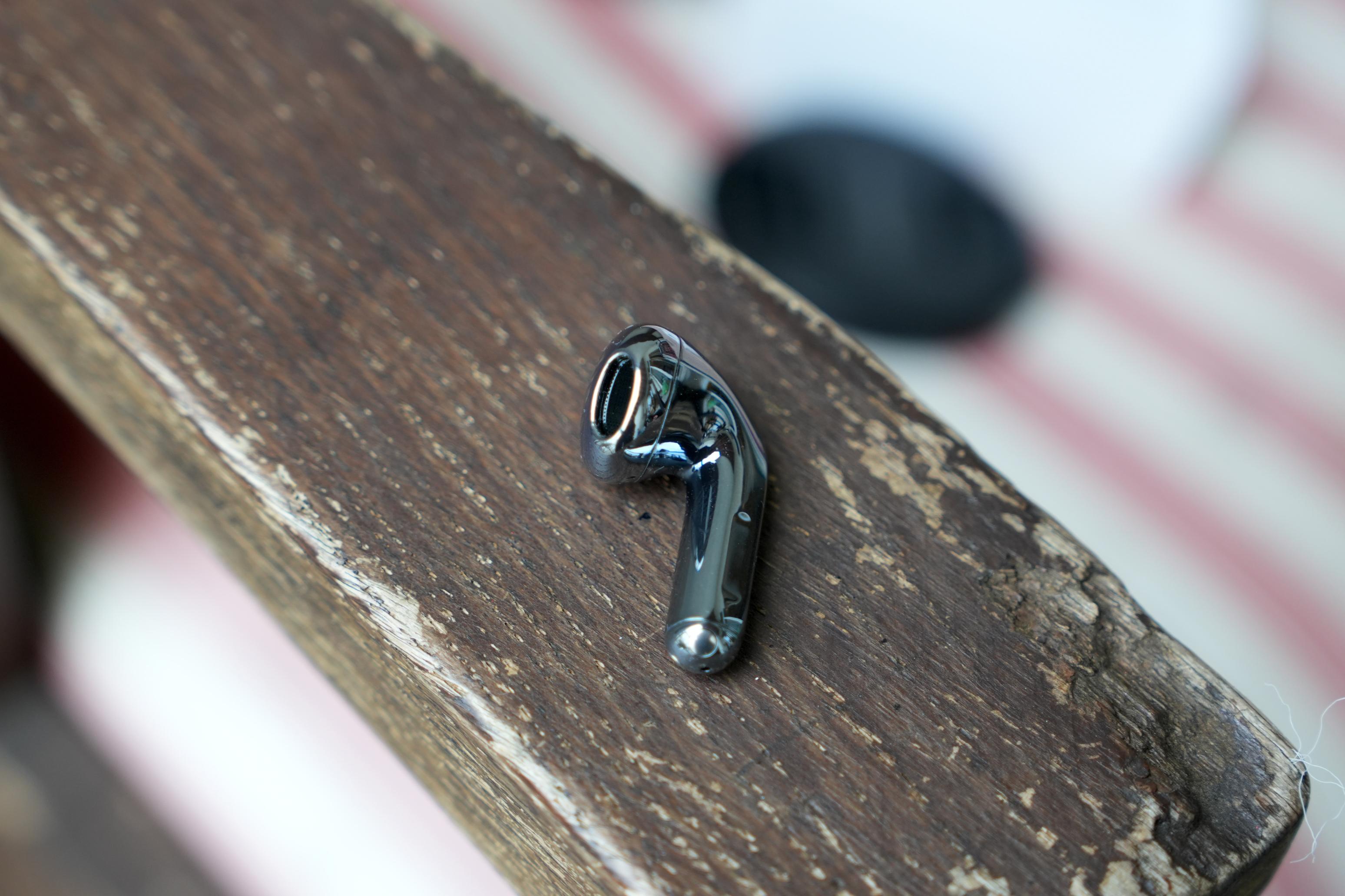 Ein Näherungssensor ist unsichtbar integriert. Zudem beherbergen die Buds ein Gyroskop und einen Beschleunigungssensor für Spatial Audio und die damit verbundene Verfolgung der Kopfbewegung. An der Station befindet sich ein USB-C-Anschluss, direkt daneben liegt der Pairing-Button. Obendrein integriert die Station einen kleinen Lautsprecher, der sich beim Öffnen und Schließen meldet oder das Aufladen bestätigt.