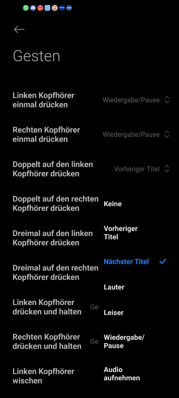 Ihr bedient die Buds durch Zusammendrücken des Stäbchens oder durch Auf- und Abwischen für die Lautstärkeregelung. Diese Kombination funktioniert hervorragend.