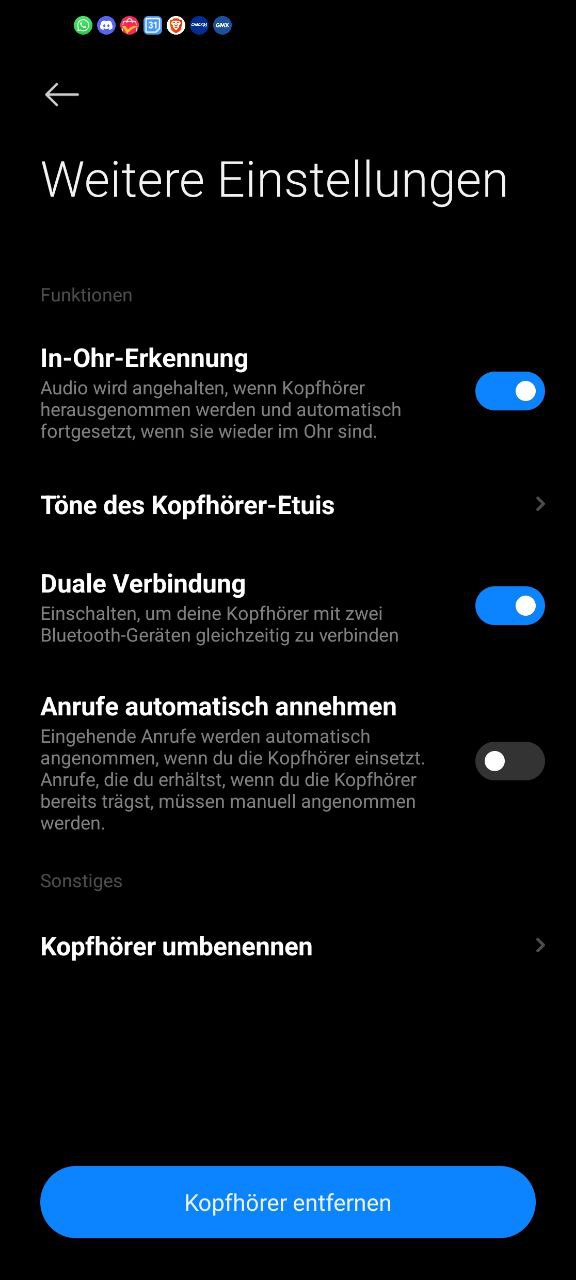 Die Xiaomi Buds 6 bieten eine Fülle an kombinierbaren Einstellungsmöglichkeiten. Standardmäßig ist „Ausgewogener Sound“ als Audioprofil aktiv. Es empfiehlt sich jedoch, „Harman AudioEFX“ oder „Harman Master“ zu nutzen, da beide Profile die Dynamik ungemein verbessern. Letzteres betont prägnante Tiefen, während Ersteres einen ausgeglichenen Klang mit klaren Höhen und Mitten liefert.