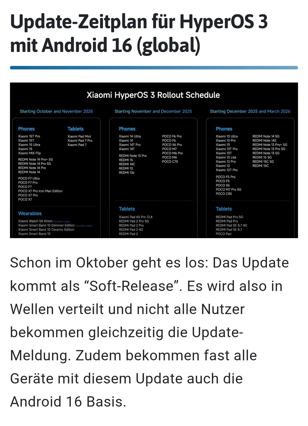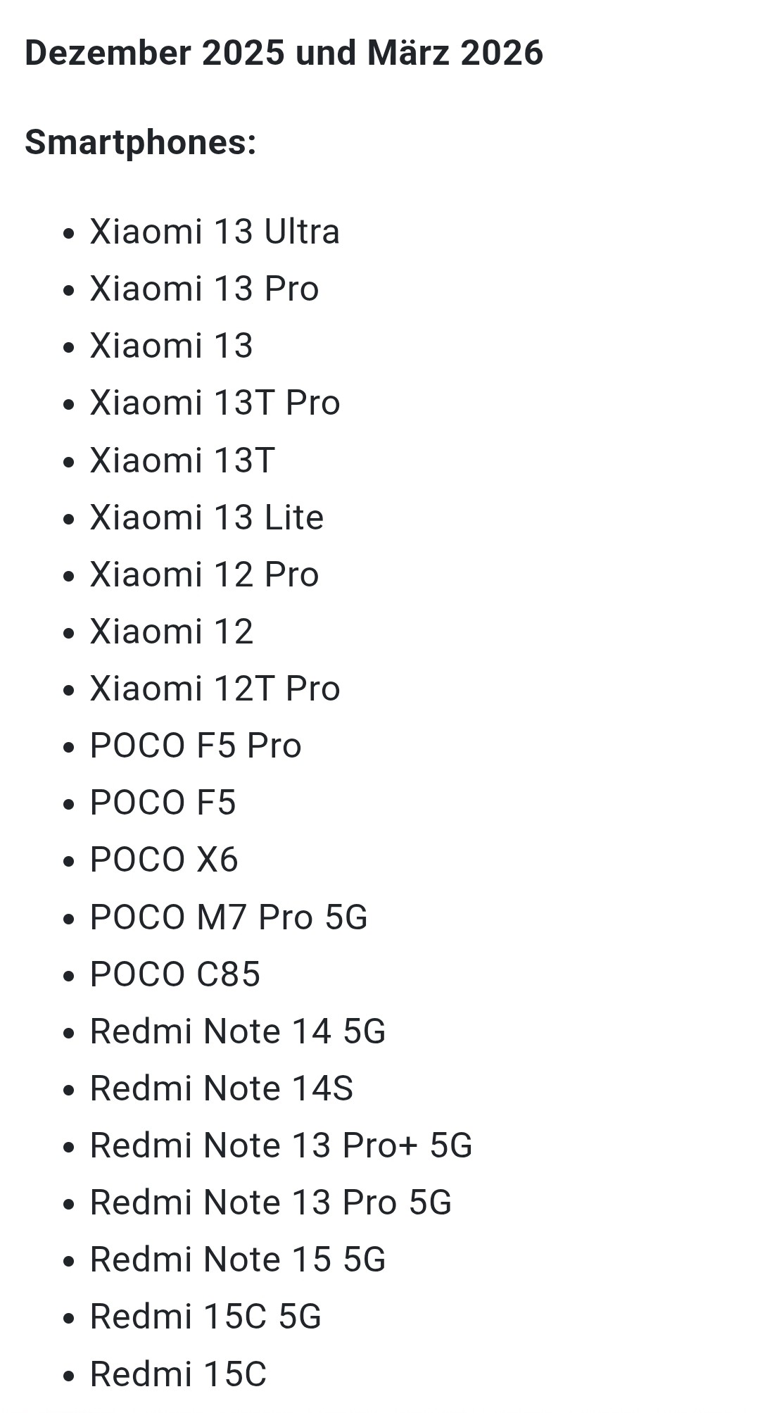 Hallo! Ihr habt bei eurer Auflistung für November ’25 März ’26 das Redmi Note 13 5G vergessen aufzulisten.bei der “schwarzen Tafel” von Xiaomi für die globale Einführung steht nämlich, dass auch Redmi Note 13 5G das Update bekommt.