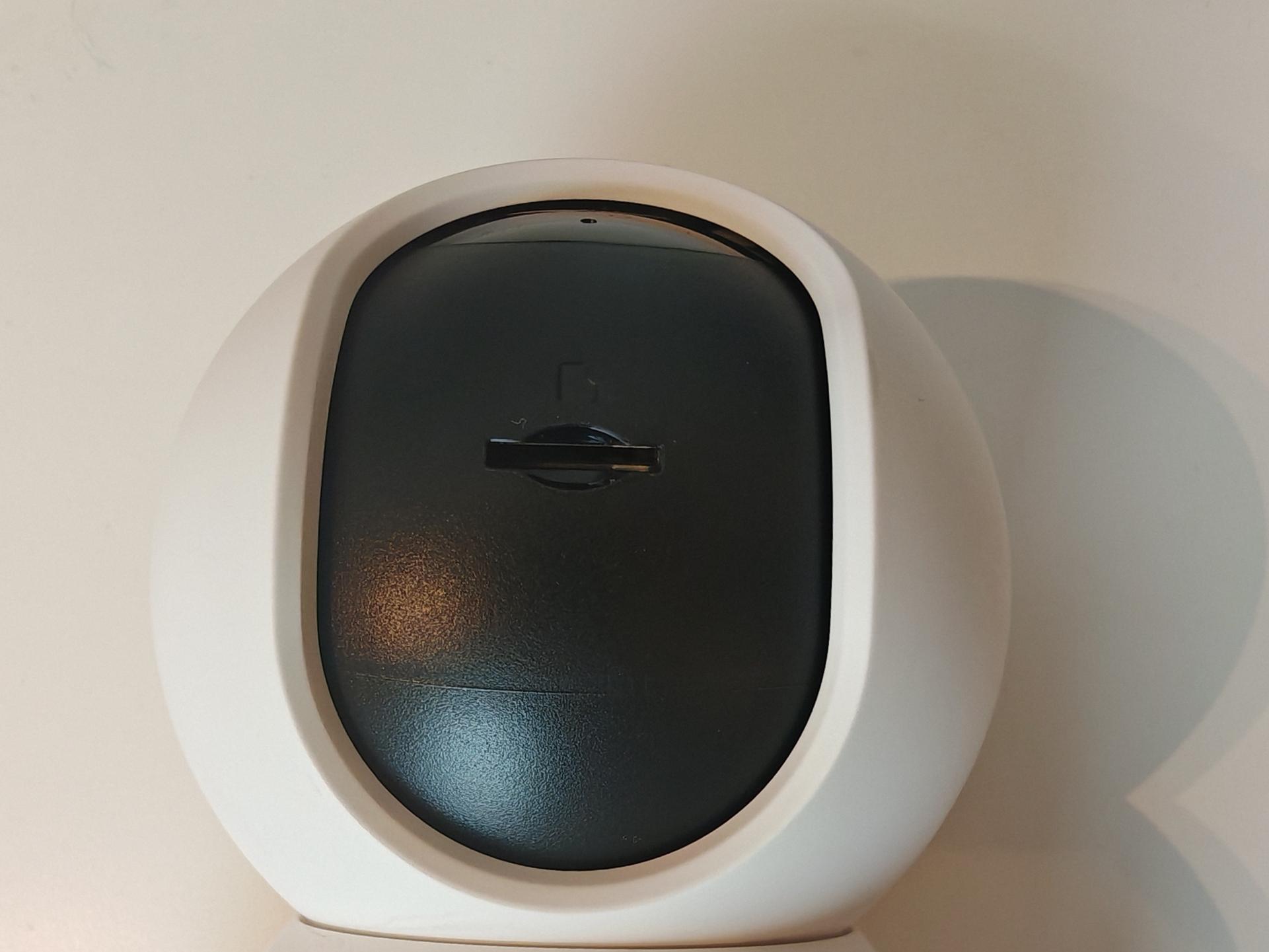 Den microSD-Slot hat Xiaomi im Betrieb unsichtbar auf der Rückseite des Kamerakopfes integriert. Um die Speicherkarte zu installieren, muss die Kamera stromlos sein. Ihr bewegt den Kopf manuell, bis der Slot zu sehen ist. Danach versorgt ihr den USB-C-Port auf der Rückseite mit Spannung und die Kamera kalibriert sich neu. Sollte es zu Störungen kommen, hilft der Reset-Knopf über dem USB-C-Port weiter.