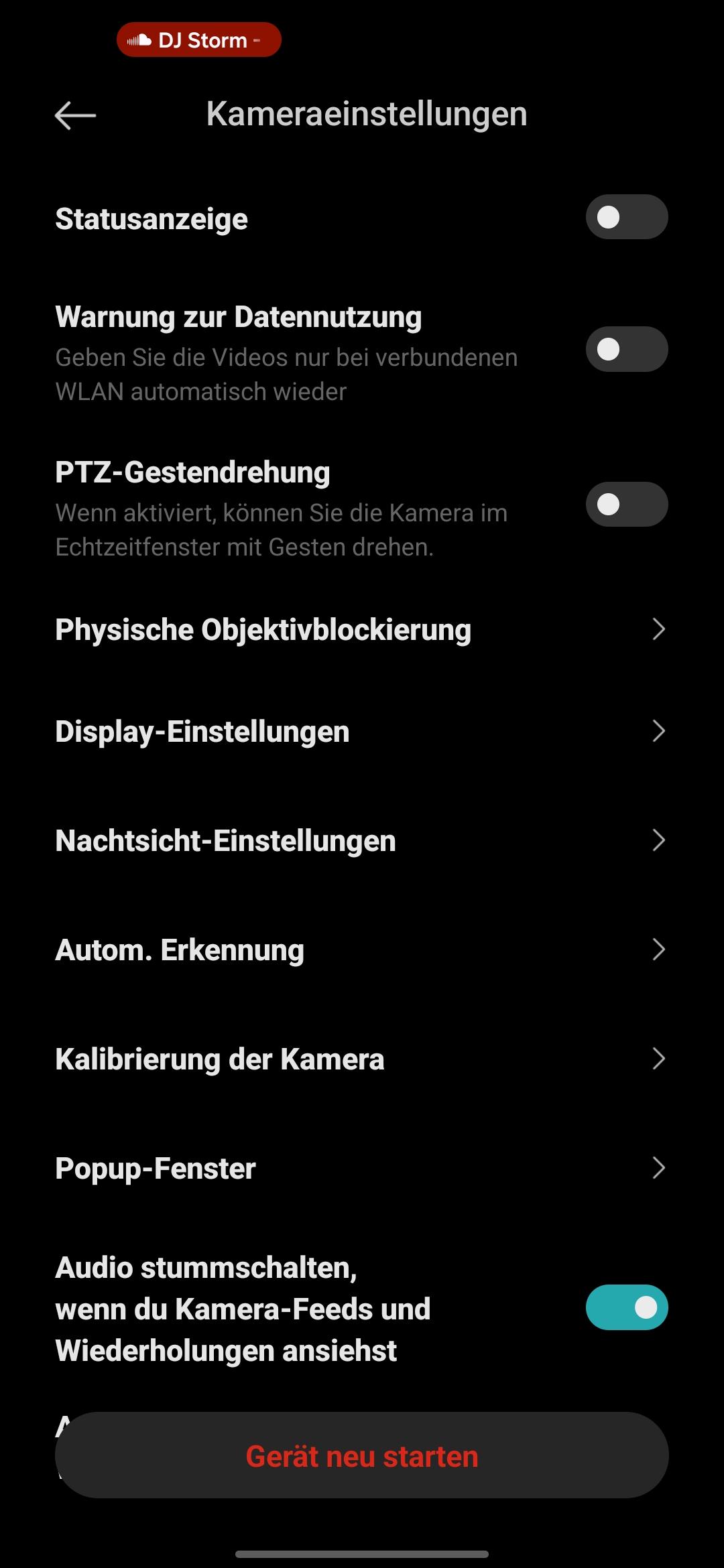 Die tiefgreifenden Funktionen sind oben rechts über die 3 Punkte zu erreichen. Hier können unter anderem die Status-LED deaktiviert, die Gestensteuerung angepasst, aber auch wichtige Dinge wie Display- oder Nachtsichteinstellungen geregelt werden. Genauso wie die automatische Erkennung kann die Verfolgung aktiviert werden; dann folgt die Kamera automatisch dem Objekt. Die Intervalle für die Hausüberwachung haben einen eigenen Menüpunkt, genauso wie die Automatisierung. Ihr könnt Routinen für die Xiaomi Kamera C701 einrichten und auch die Einbindung in das NAS stellt keine große Hürde dar. Selbst einfache Lösungen wie das FRITZ!NAS werden akzeptiert.