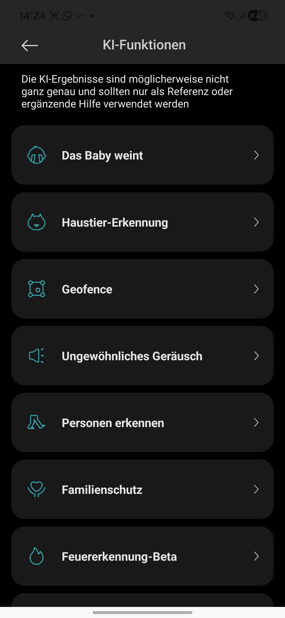 Die App ist der zentrale Anlaufpunkt für die Xiaomi Kamera C701 und erlaubt die Konfiguration der Kamera sowie den Zugriff auf das Live-Bild und die Aufnahmen. Grundsätzlich gliedert sich das Menü in die vier Punkte Hausüberwachung, Wiedergabe, Speicherverwaltung und KI-Funktionen. Bei der Hausüberwachung wird je nach Einstellung für 10 Sekunden eine Aufnahme gestartet. Wann die Überwachung startet, wird unter den KI-Funktionen festgelegt. Hier stehen 8 verschiedene Merkmale zur Verfügung, die sich teilweise noch genauer definieren lassen. So lassen sich beispielsweise auch virtuelle Grenzen in Räumen ziehen oder die Kamera wird nur aktiviert, wenn ein Baby weint. Auch eine Kombination aus allen acht Merkmalen ist möglich. Im Testzeitraum war die Erkennung zuverlässig und auch die Weiterleitung auf das Smartphone mittels Push-Nachricht erfolgte ohne Probleme. Auch unterwegs konnte ich jederzeit auf die Kamera zugreifen, die Verbindung ist stabil und zuverlässig.