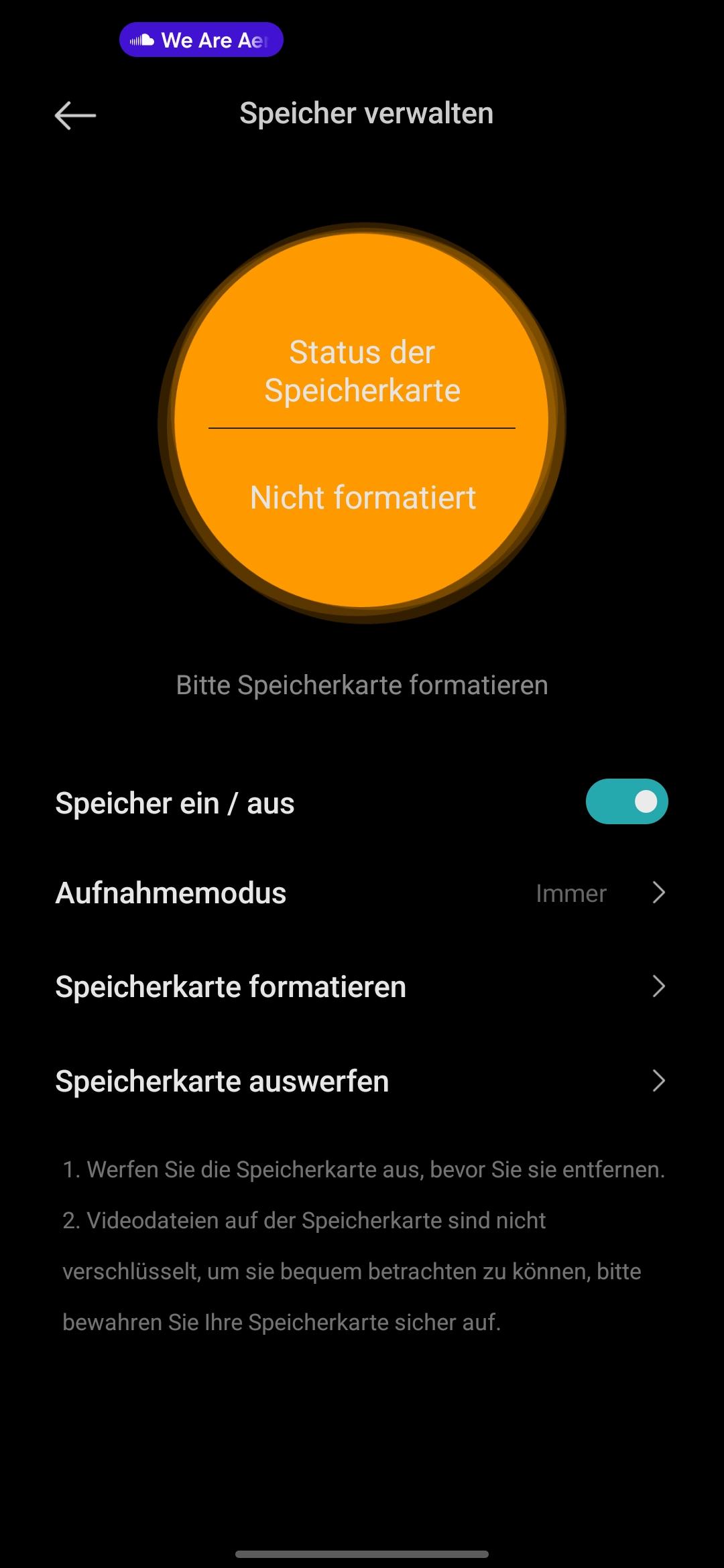 Im Bereich Wiedergabe wird euch der gesamte gespeicherte Verlauf angezeigt. Hier wird im Loop-Verfahren gearbeitet: Wenn die Speicherkarte voll ist, werden die ältesten Aufnahmen überschrieben. So hängt es allein von der Größe der Speicherkarte ab, wie weit ihr in die Vergangenheit schauen könnt. Mit meinen 64GB werden rund 5 Tage abgedeckt. Falls gewünscht, werden auch nur die Ereignisse aufgezeichnet und der Speicher weniger beansprucht. In der Speicherverwaltung kann der Speicherort der Aufnahmen festgelegt werden. Die Cloudspeicherung ist kostenpflichtig, wogegen die Speicherung auf der SD-Karte sowie lokal im eigenen NAS kostenfrei ist.