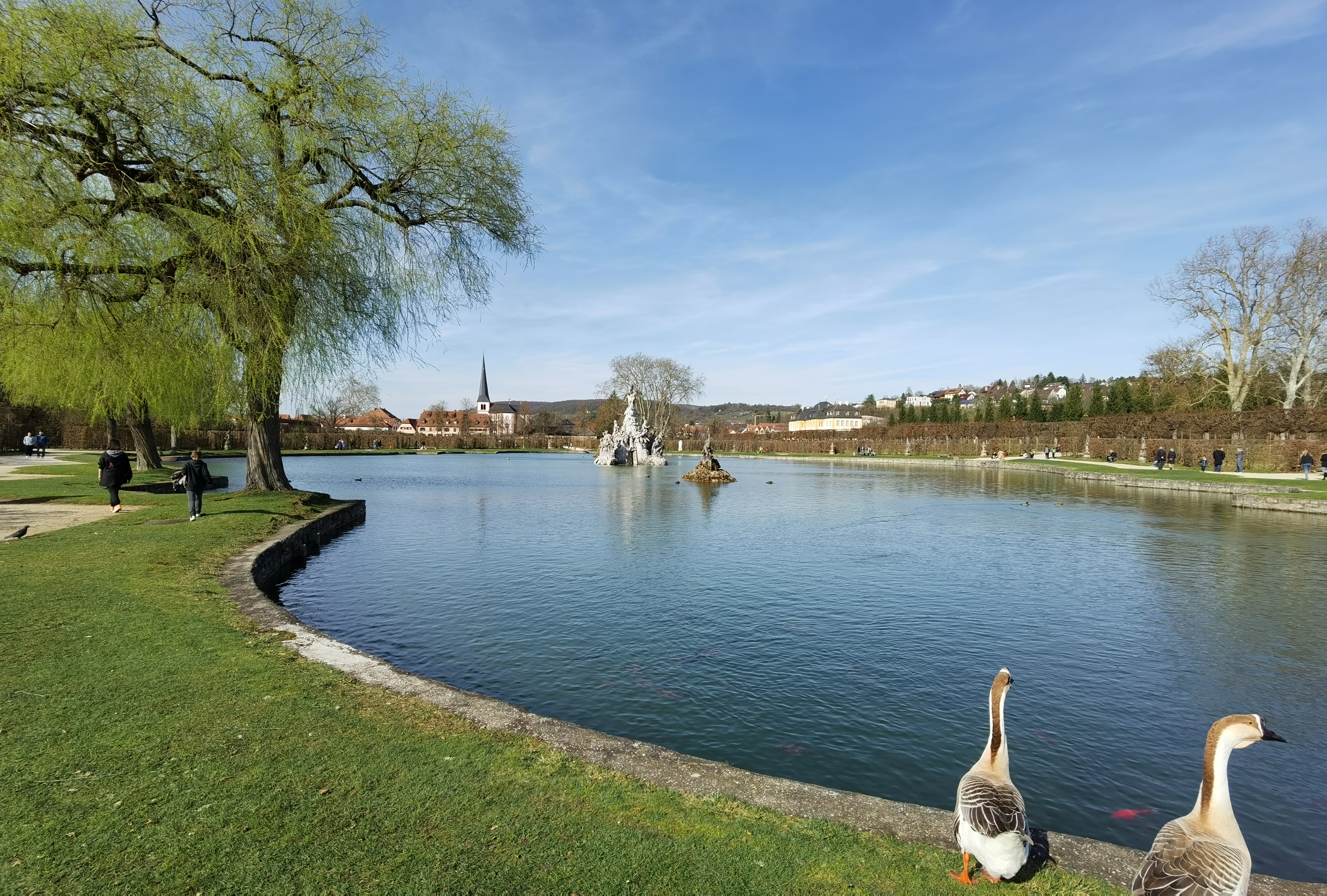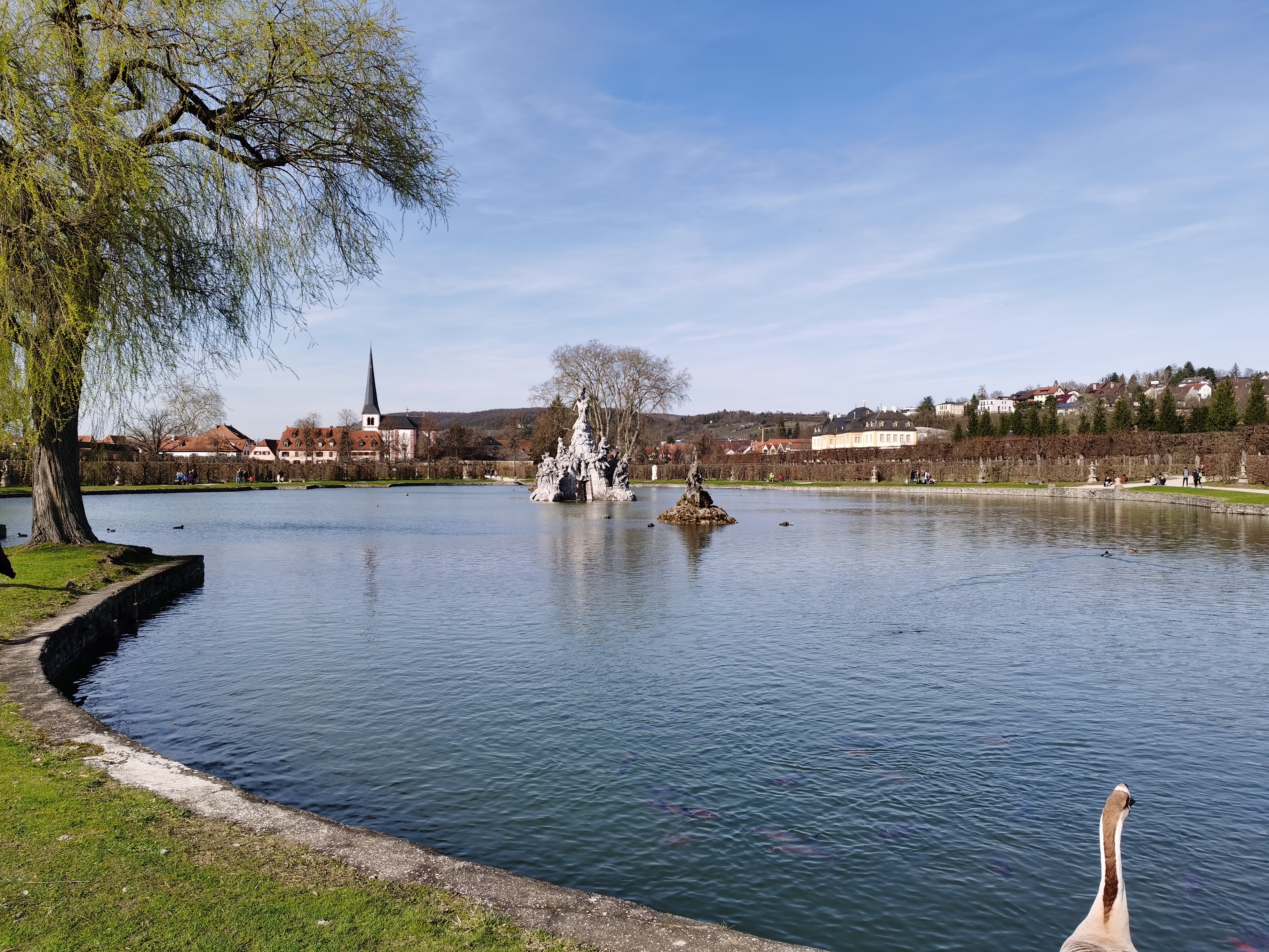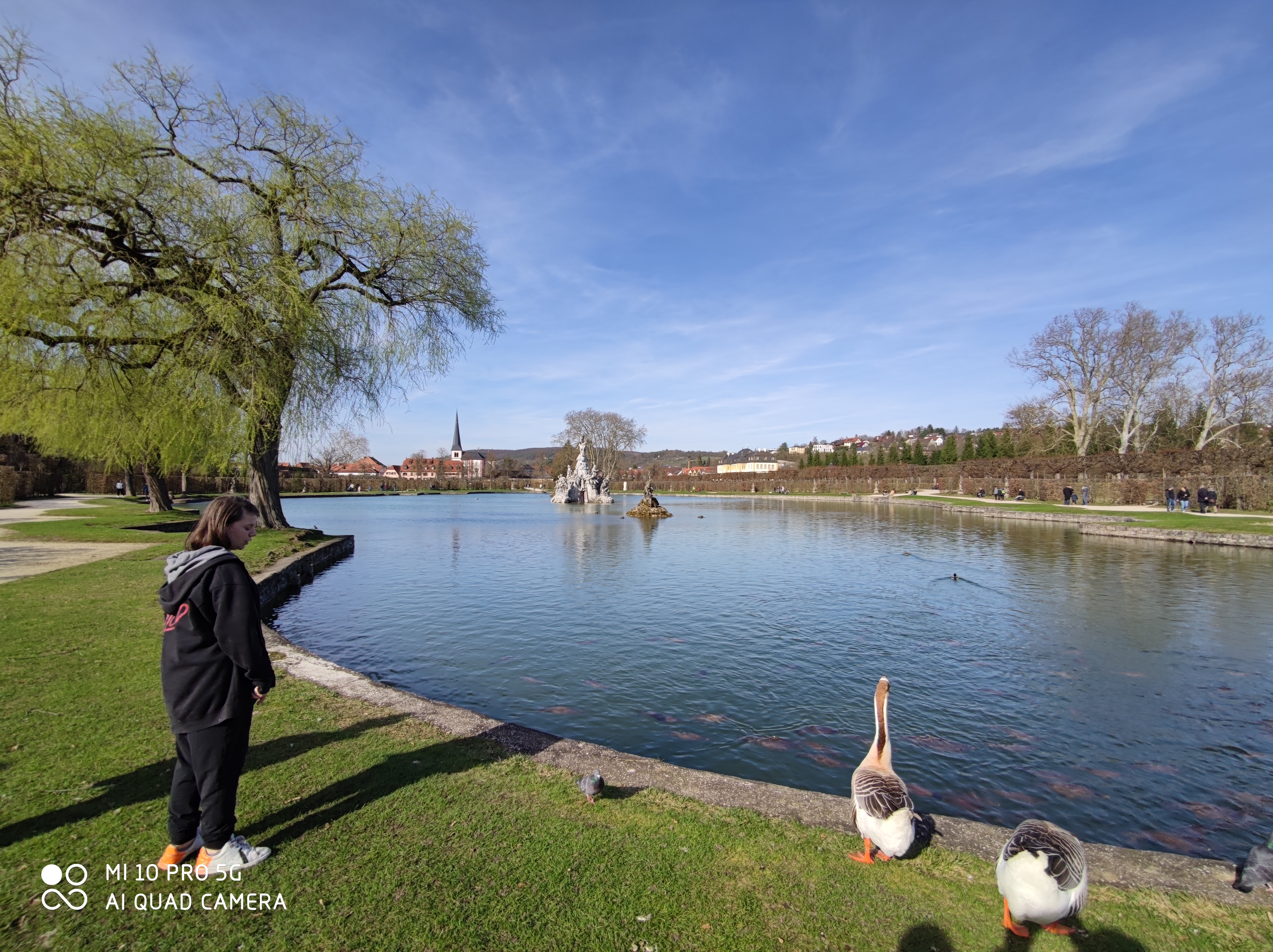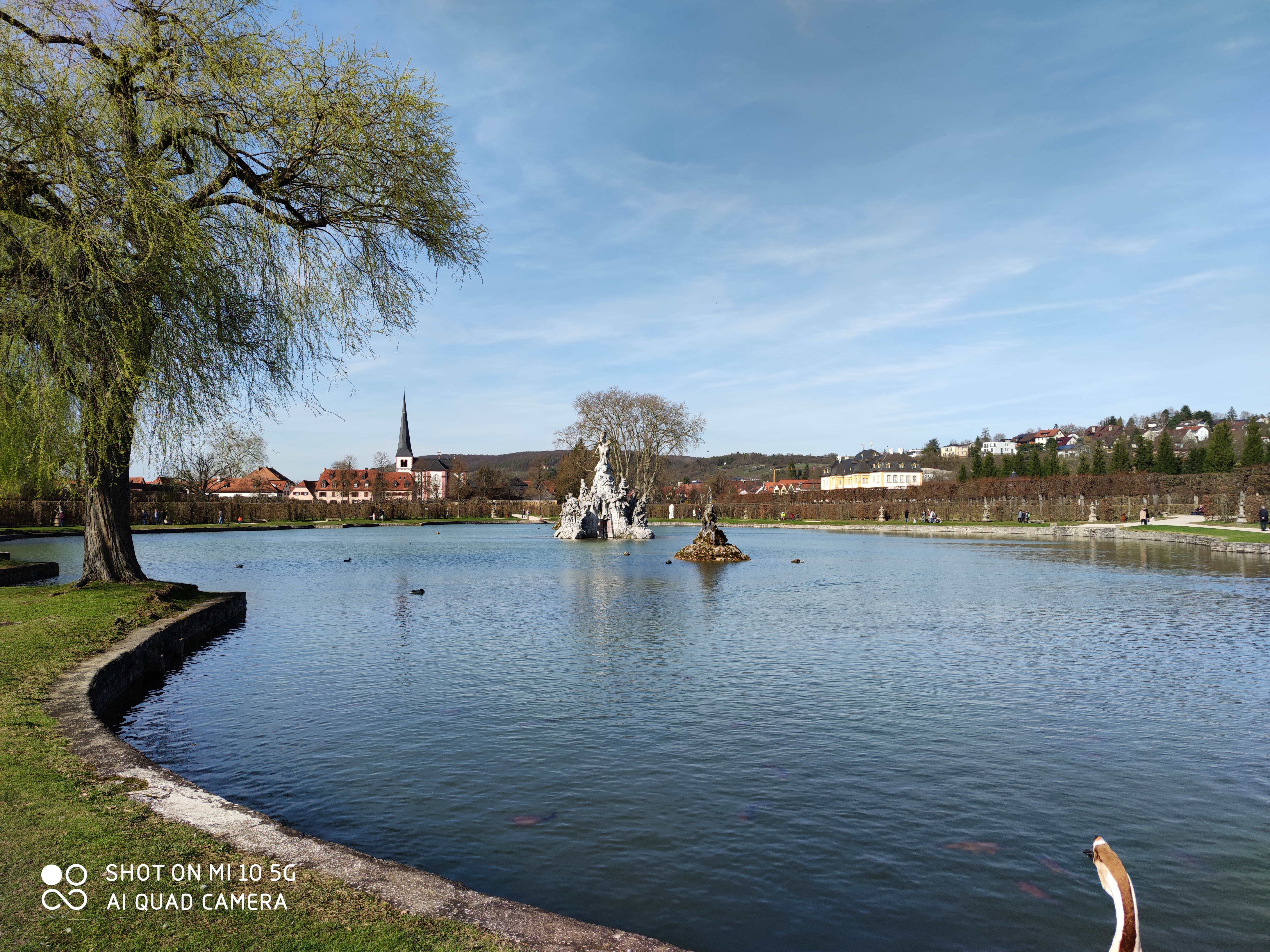 Beim Bild vom See greift die Software des Mi 10 pro stark ins Bild ein. Das sieht man insbesondere am Wasser und am Baum links. Die Einstellungen der Kamera-App waren bei beiden Geräten auf Standard. Dennoch ist das Ergebnis klar sichtbar und das Mi 10 pro produziert kräftigere Farben und eine andersfarbige Wasseroberfläche. Beim Zoom Bild auf die Kirche sieht man noch einmal den Detailsunterschied der Aufnahmen.