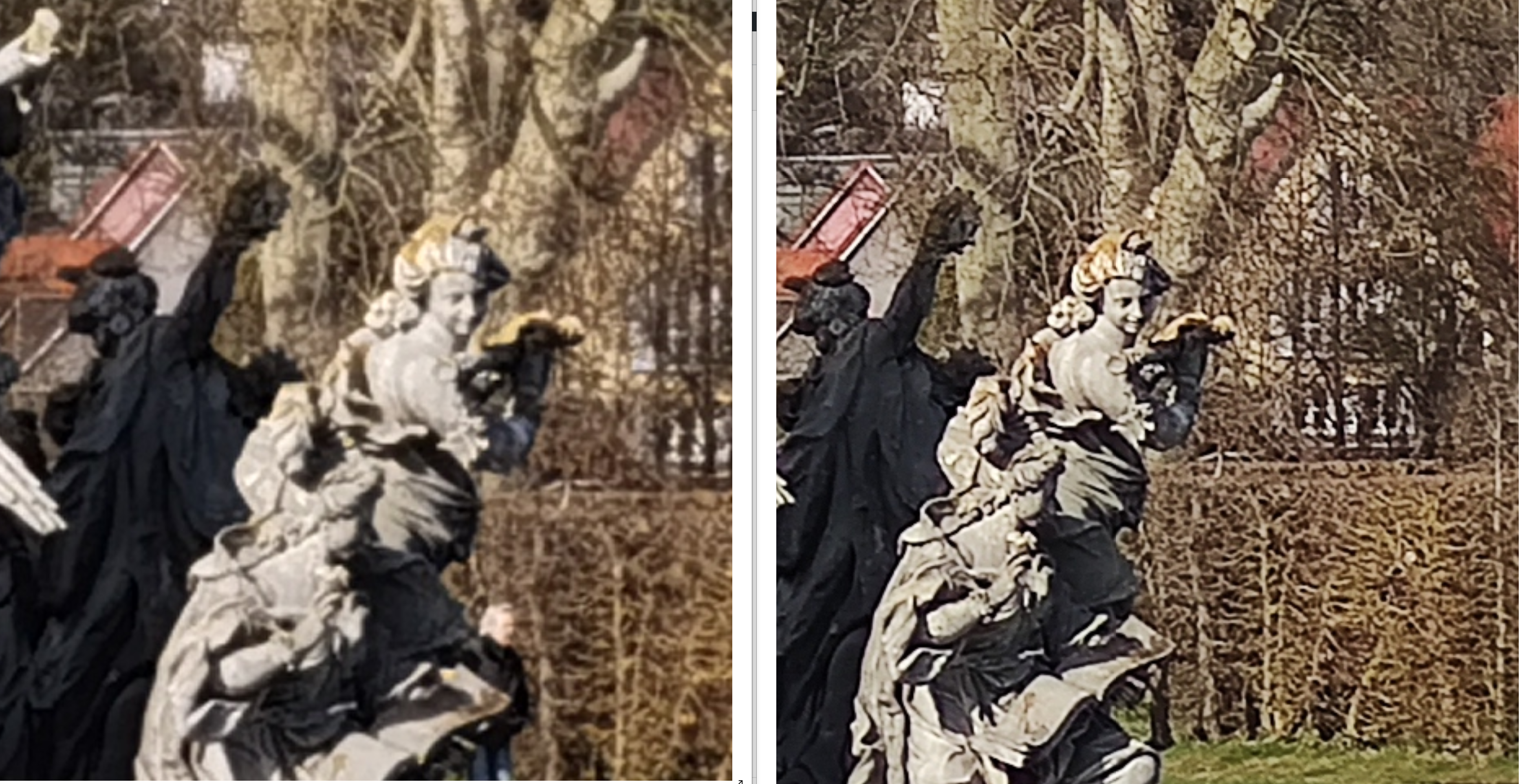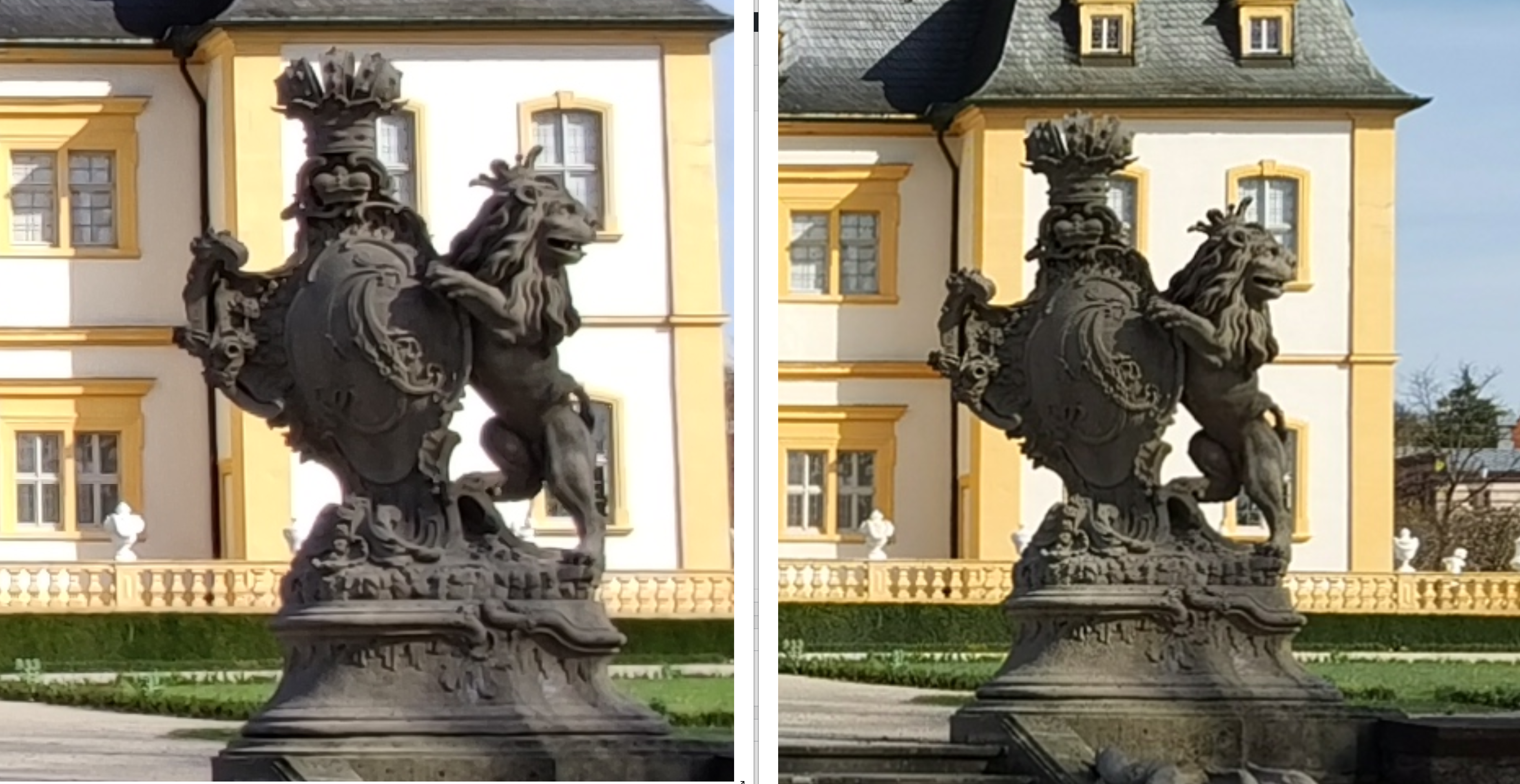 Das normale Mi 10 bleibt hier außen vor, da die besten Zoom-Aufnahmen dort nur aus einem 108 Megapixel Bild selbst zusammengefügt werden können. Das Mate 30 Pro und das Mi 10 Pro hingegen konkurrieren mit einer OIS gestützten Periskopkamera miteinander.