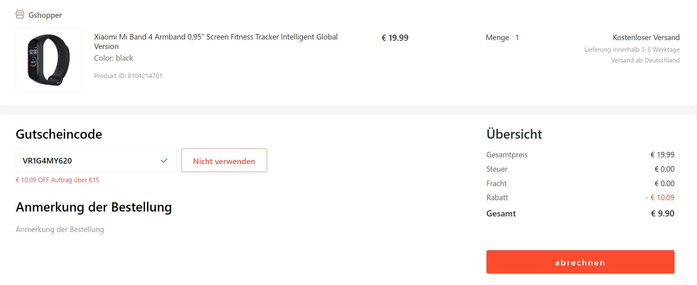 Um auf den niedrigen Preis zu kommen, muss der Gutschein “VR1G4MY620” im Warenkorb eingegeben werden.