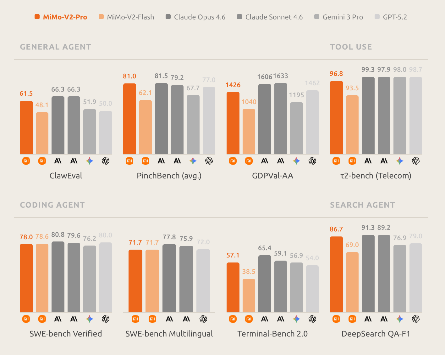 Erste Werte aus Benchmarks zeigen, dass Xiaomi hier nicht übertreibt: In den meisten Tests kann das Modell ähnlich gut performen wie ChatGPT, Gemini und Claude.