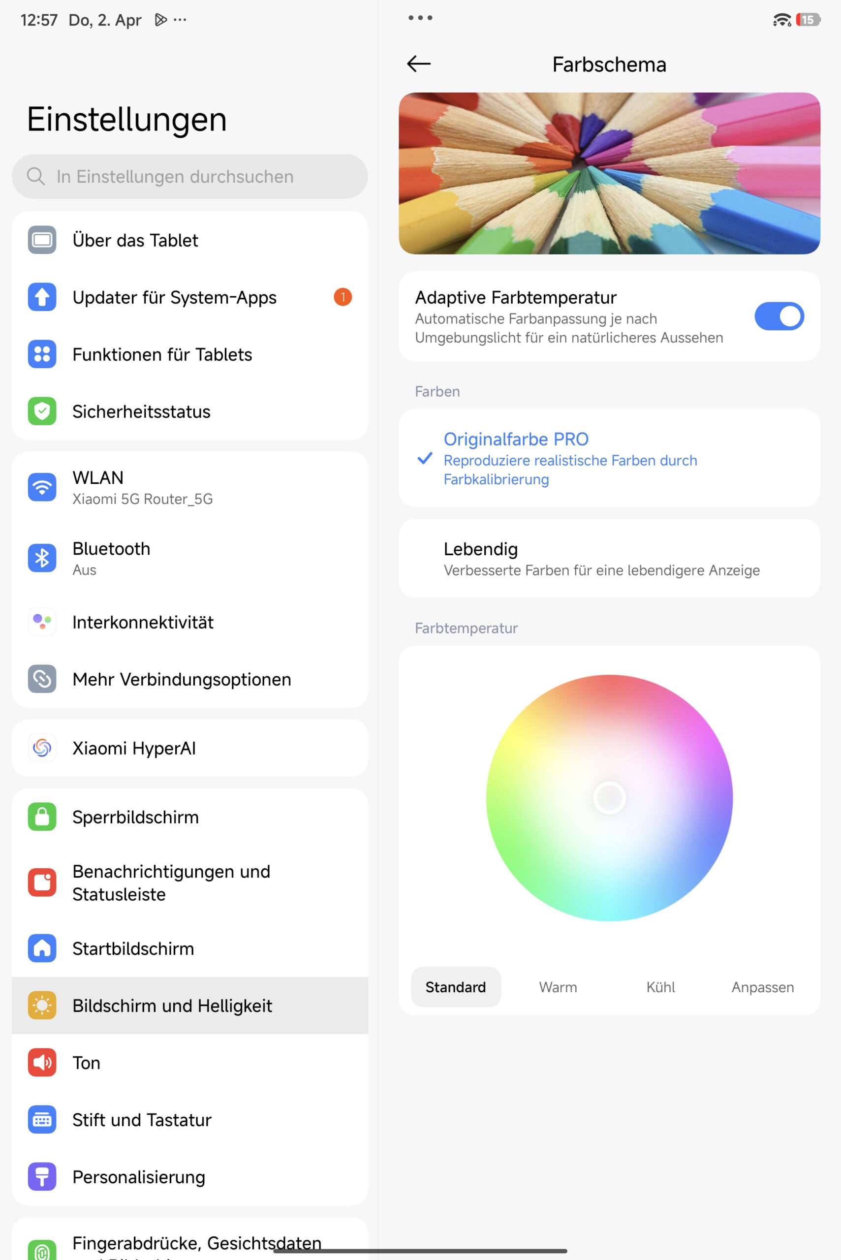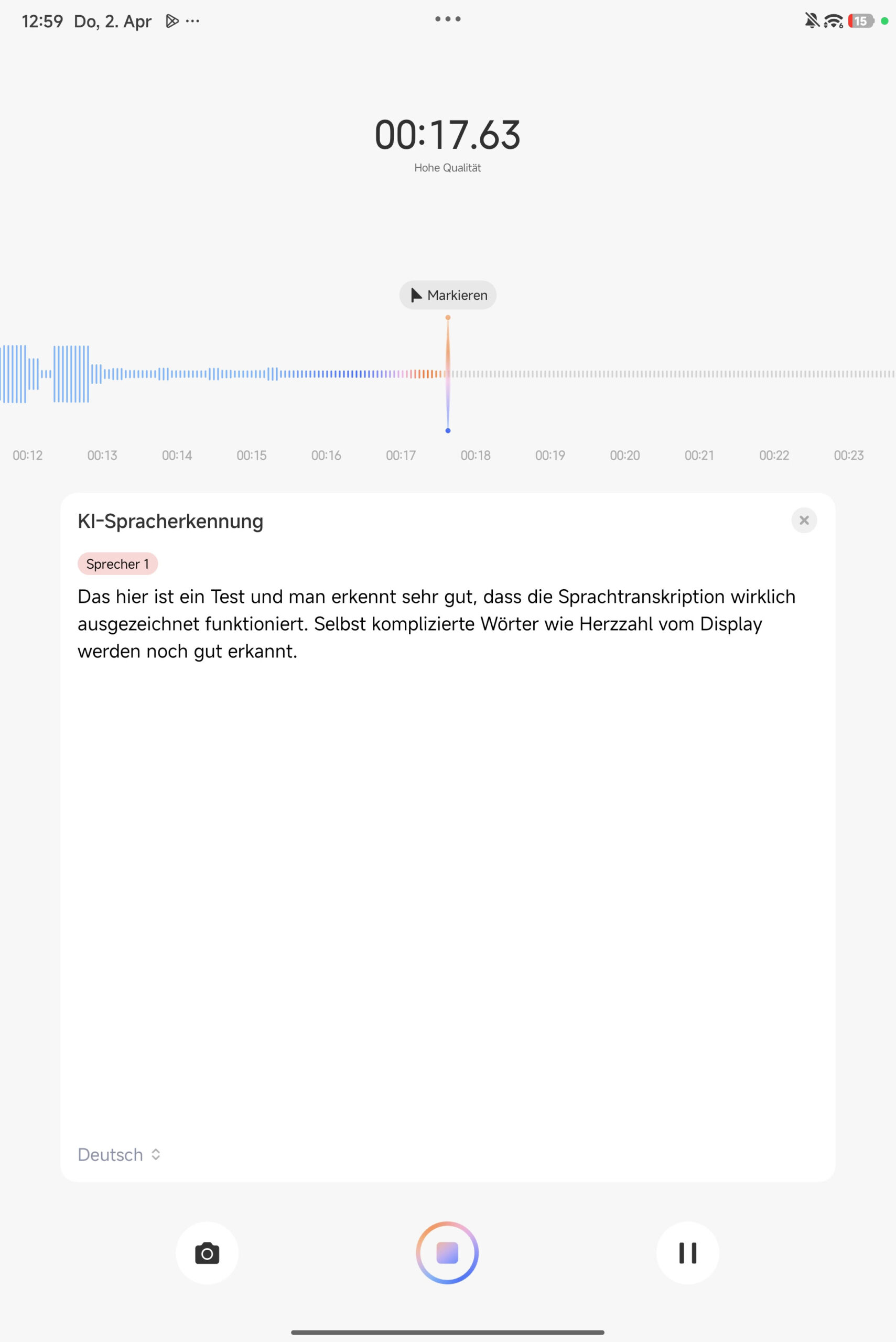 Unter dem Schlagwort „Xiaomi HyperAI“ bündelt das Tablet zudem diverse KI-Funktionen. Mit an Bord sind Features für Texte, Übersetzungen, Live-Untertitel, dynamische Wallpaper, AI Art und ein AI-Editor. Im Test zeigte sich ein gemischtes Bild: Einerseits wirken einige der KI-Funktionen teilweise noch unausgereift. Andererseits überrascht das System dann aber doch mit nützlichen Werkzeugen, wie etwa einer gut funktionierenden Live-Transkription von Sprachaufnahmen.