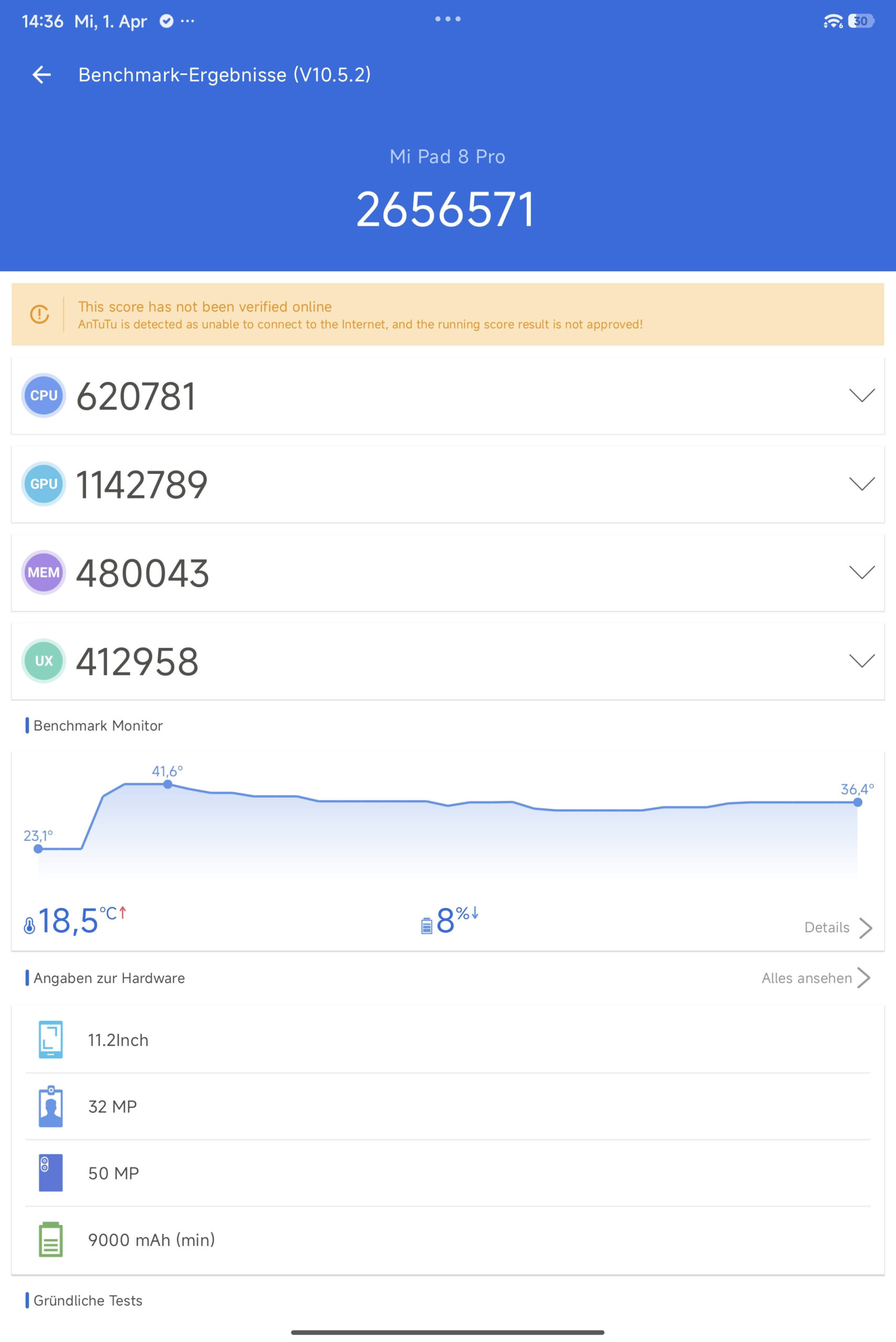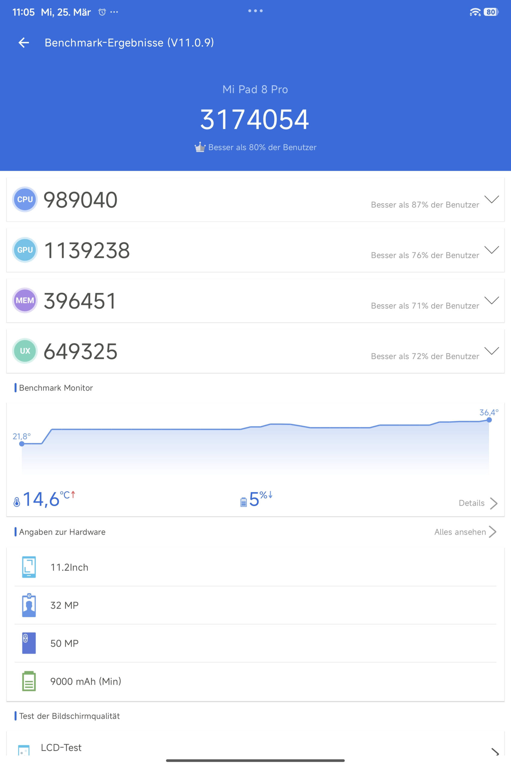 Akkulaufzeit des Xiaomi Pad 8 Pro