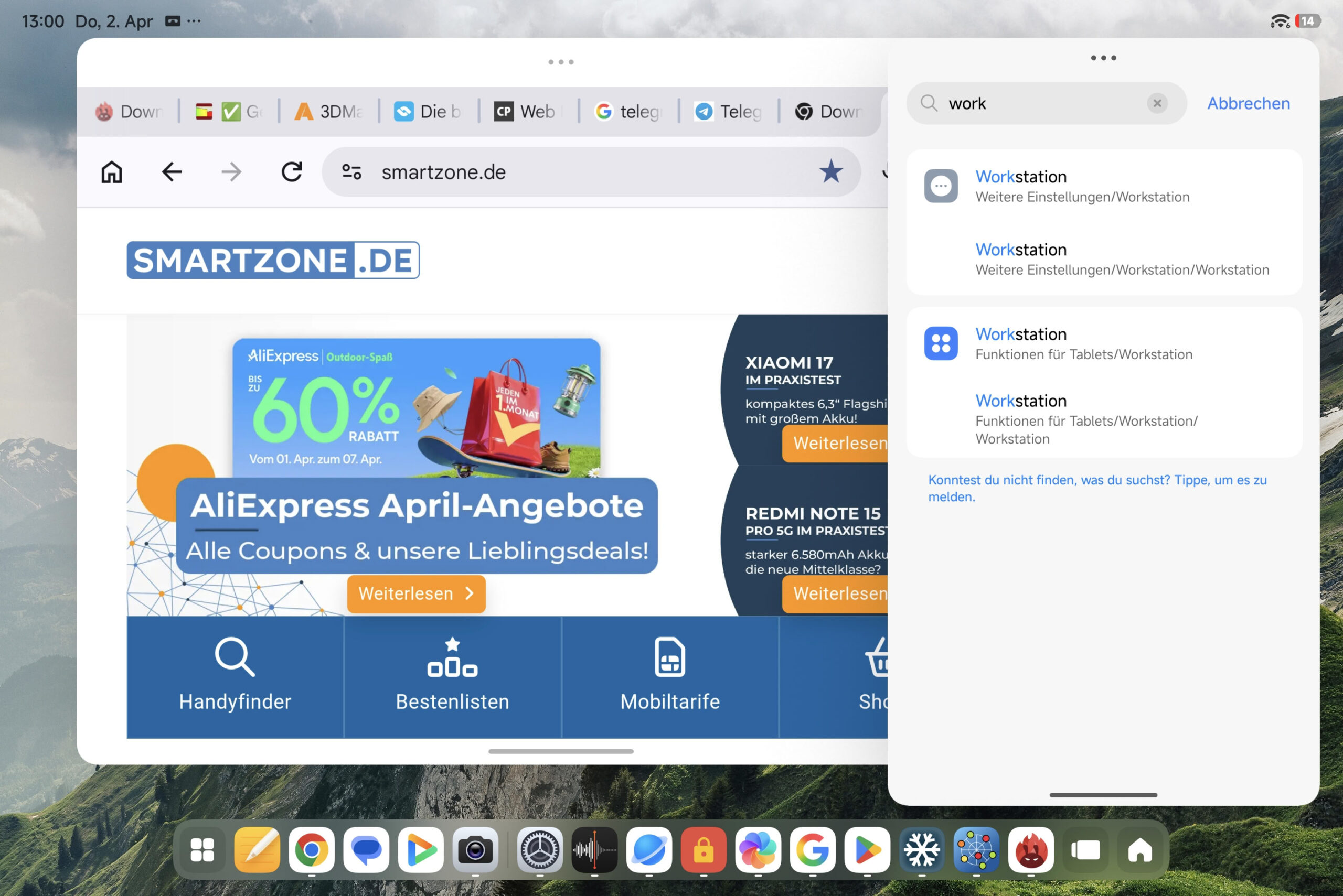 Für Nutzer, die das Tablet als Laptop-Ersatz verwenden möchten, gibt es den Workspace-Modus. Dieser soll ein Desktop-ähnliches Erlebnis schaffen, steckt aber in den Anfängen. Das Fenstermanagement könnte besser sein und auch die Gesten lassen sich noch nicht optimal belegen. Wenigstens drei Buttons zum Beenden, Maximieren und Minimieren ohne umständliches Menü hätte Xiaomi mal bei MacOS oder Windows abkupfern können.