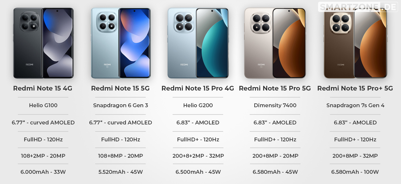 Gemeinsamkeiten und Unterschiede der Redmi Note 15 Reihe