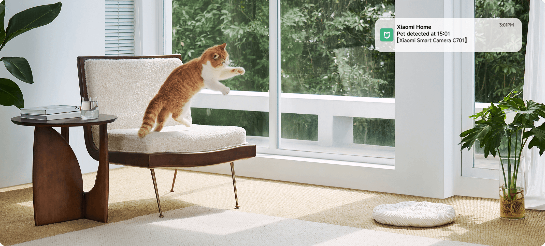 Für eine flüssige Interaktion mit der Xiaomi Home-App ist die Smart Camera C701 mit WiFi 6 ausgestattet. In der App steht euch dann eine Handvoll KI-Features zur Verfügung. Mit dabei sind eine intelligente Baby- und Haustierüberwachung mit einer Benachrichtigung, wenn das Baby weint. Wenn Hunde und Katzen in der Wohnung spielen, zeichnet die Kamera sofort auf und verfolgt die Haustiere.