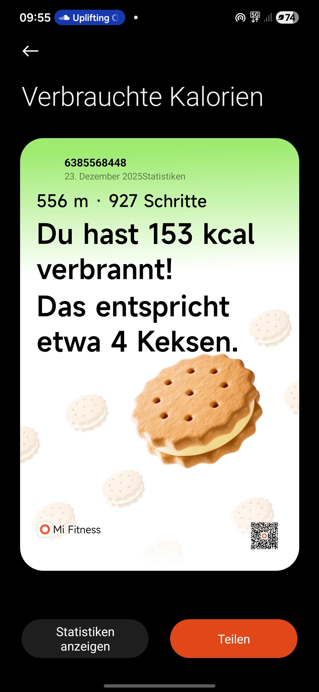 Als App kommt Mi Fitness zum Einsatz, verfügbar für iOS und Android. Getestet habe ich die Uhr größtenteils mit meinem Daily Driver Samsung Galaxy S25 Edge, aber auch mit dem Redmi Note 15 5G. Vor der Nutzung der App ist eine Registrierung bei Xiaomi notwendig. Einen Gast-Modus gibt es bedauerlicherweise nicht. Die App gliedert sich in die vier Bereiche Gesundheit, Training, Gerät und Profil und ist recht übersichtlich. Als kleine Motivation werden verbrauchte Kilokalorien in Kekse umgerechnet. Gekoppelt wird die Uhr bequem über das Scannen des QR-Codes auf dem Display.