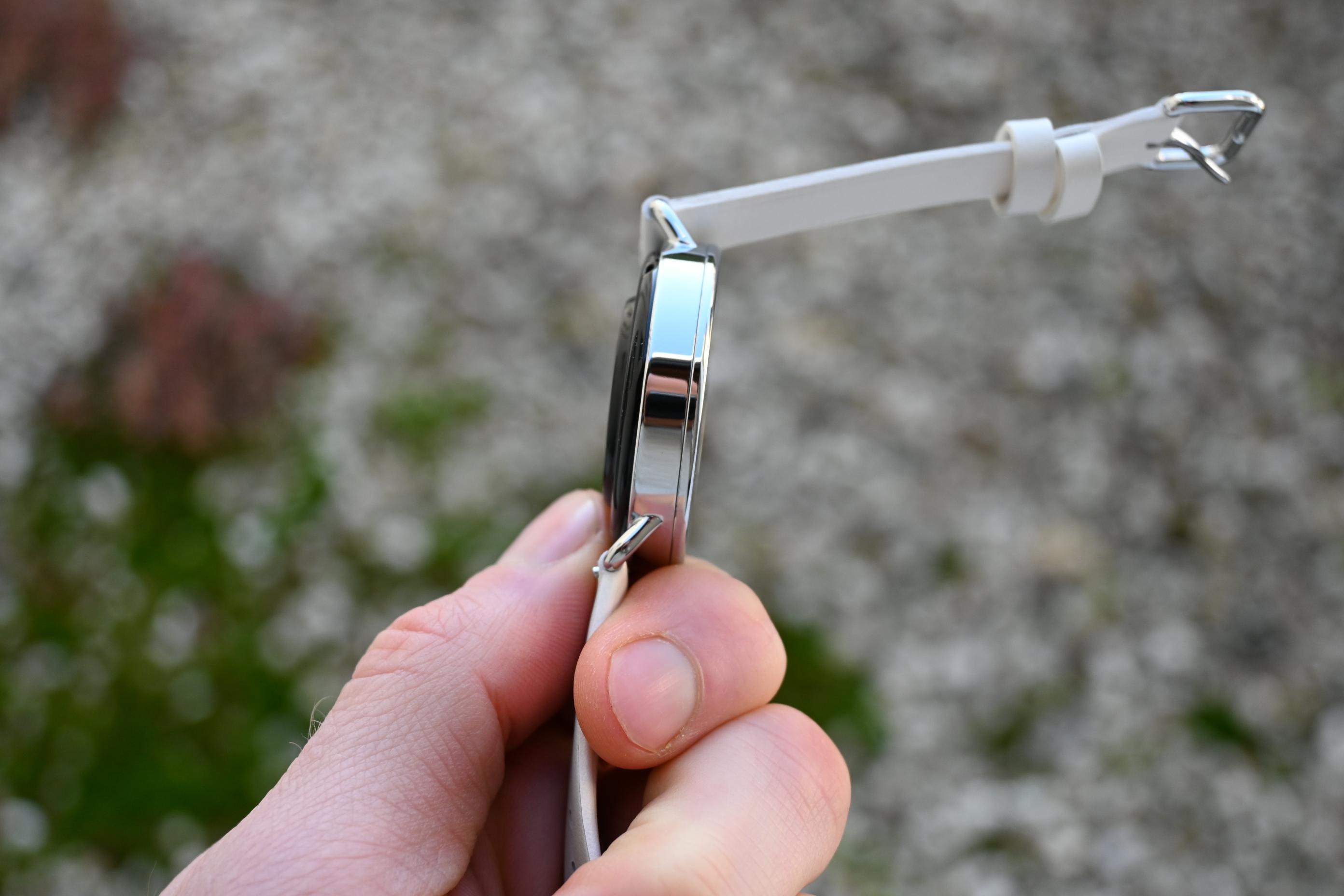 Auf den Produktbildern wirkt die Xiaomi Watch S4 (41mm) elegant und sollte eine unauffällige Figur am Handgelenk machen. Mit 41mm Durchmesser ist die Uhr angenehm klein und vor allem für schmale Handgelenke zu empfehlen, denn das beigelegte Armband ist kurz. Wir haben die weiße Variante im Test. 190mm sind die maximale Länge, was für mein relativ schmales Handgelenk fast schon zu kurz ist. Für Personen mit einem kräftigen Handgelenk dürfte das Lederarmband nicht passen.