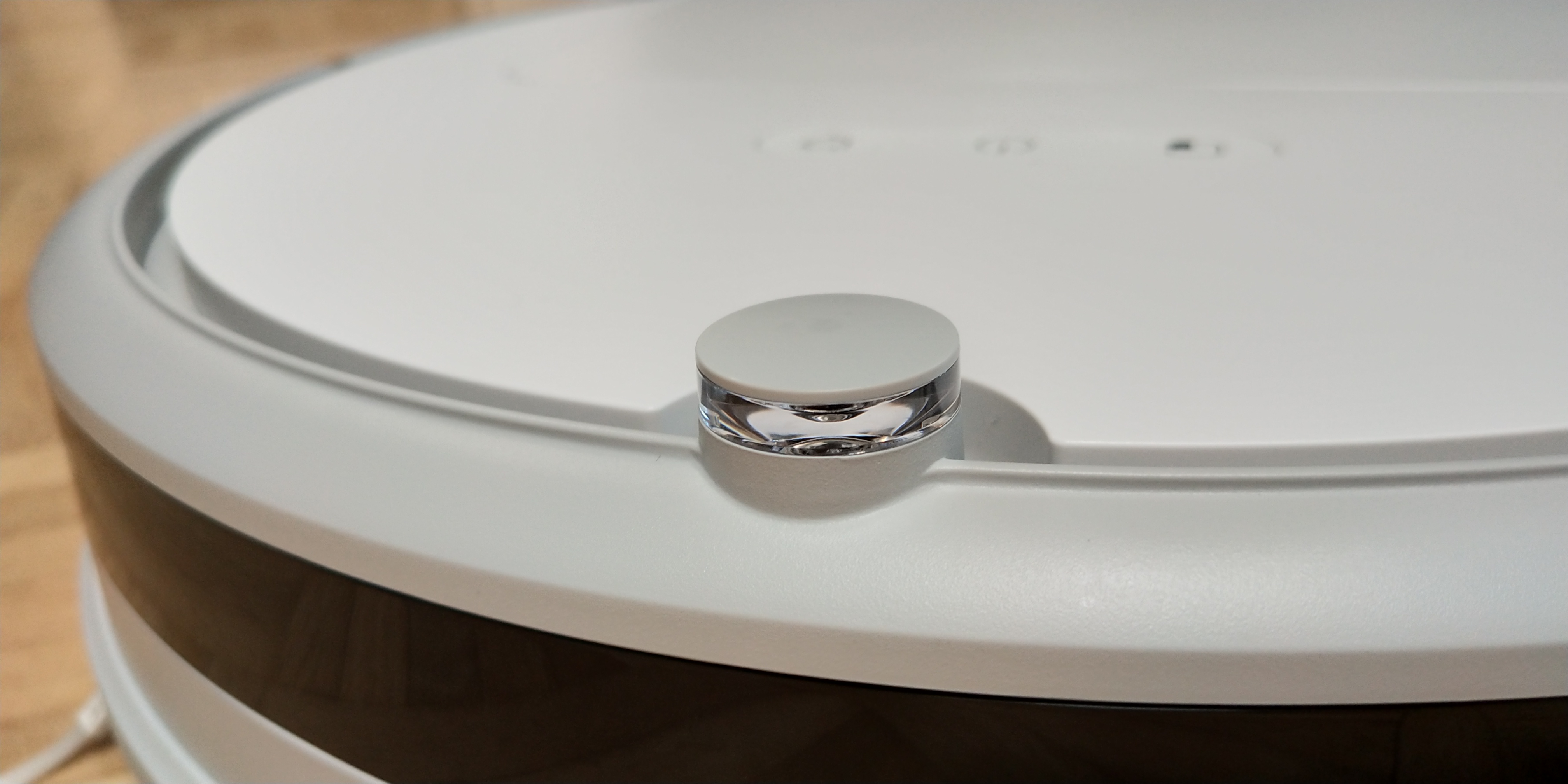 Zur direkten Nutzung des Gerätes ist eine Reihe, bestehend aus 3 Buttons vorhanden. Ein Druck auf den mittig positionierten Power-Button startet das Gerät direkt mit einer leichten Verzögerung, bzw. pausiert den Saugvorgang bei erneutem Druck. Während des Betriebes leuchtet die Power-LED in Weiß. Das Starten des Roborock hört sich wie ein Düsenjet an, der seine Triebwerke einschaltet. Sobald auf Touren, fährt und saugt der Roborock auch direkt los. Auf der rechten Seite befindet sich der „Energie-Button“.