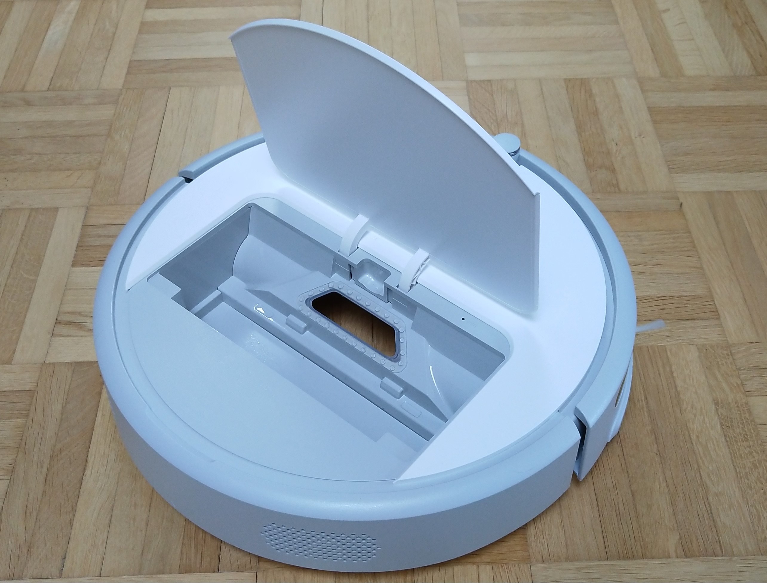 Das Gerät hat eine Größe von 35,30 x 35,00 x 9,05 cm und wiegt 3,0 kg. Der Staubbehälter hat eine Kapazität von 640ml. Abhängig von der Größer eurer Wohnung und Aufkommen von Dreck, Staub und anderer Artikel ist das genug Volumen, dass ihr den Behälter ca. einmal pro Woche entleeren müsst. Kleiner Kritikpunkt an dieser Stelle: Beim Öffnen der Staubbox ist ein wenig Vorsicht geboten. Ihr wollt doch nicht, dass die Arbeit des Roborock zu Nichte gemacht wird, indem ihr unachtsam den Behälter öffnet und der ganze Dreck wieder auf dem Boden landet?! 🙂 Der Roborock hat eine Leistung von 50W. Viele sind immer noch der Meinung, dass ein Staubsauger mit mehr Watt auch eine bessere Saugleistung haben. Hierbei handelt sich nämlich nur um die elektronische Leistung des Motors und hat somit nicht direkt Einfluss auf das Saugergebnis. Ausschlaggebend für eine gut Saugleistung ist der Volumendurchsatz an Luft, der eingesaugt wird, bzw. die Druckdifferenz. Genauere Angaben zur Saugleistung des Roborocks sind leider nirgends genauer spezifiziert. Lediglich die Druckdifferenz von 1600Pa wird angegeben, die im Vergleich zum Mi Vacuum 1 (1800 Pa) und Vacuum 2 (2000 Pa) etwas geringer ausfällt. Handelsübliche Staubsauger haben eine Saugleistung von ca. 2500Pa zum Vergleich.