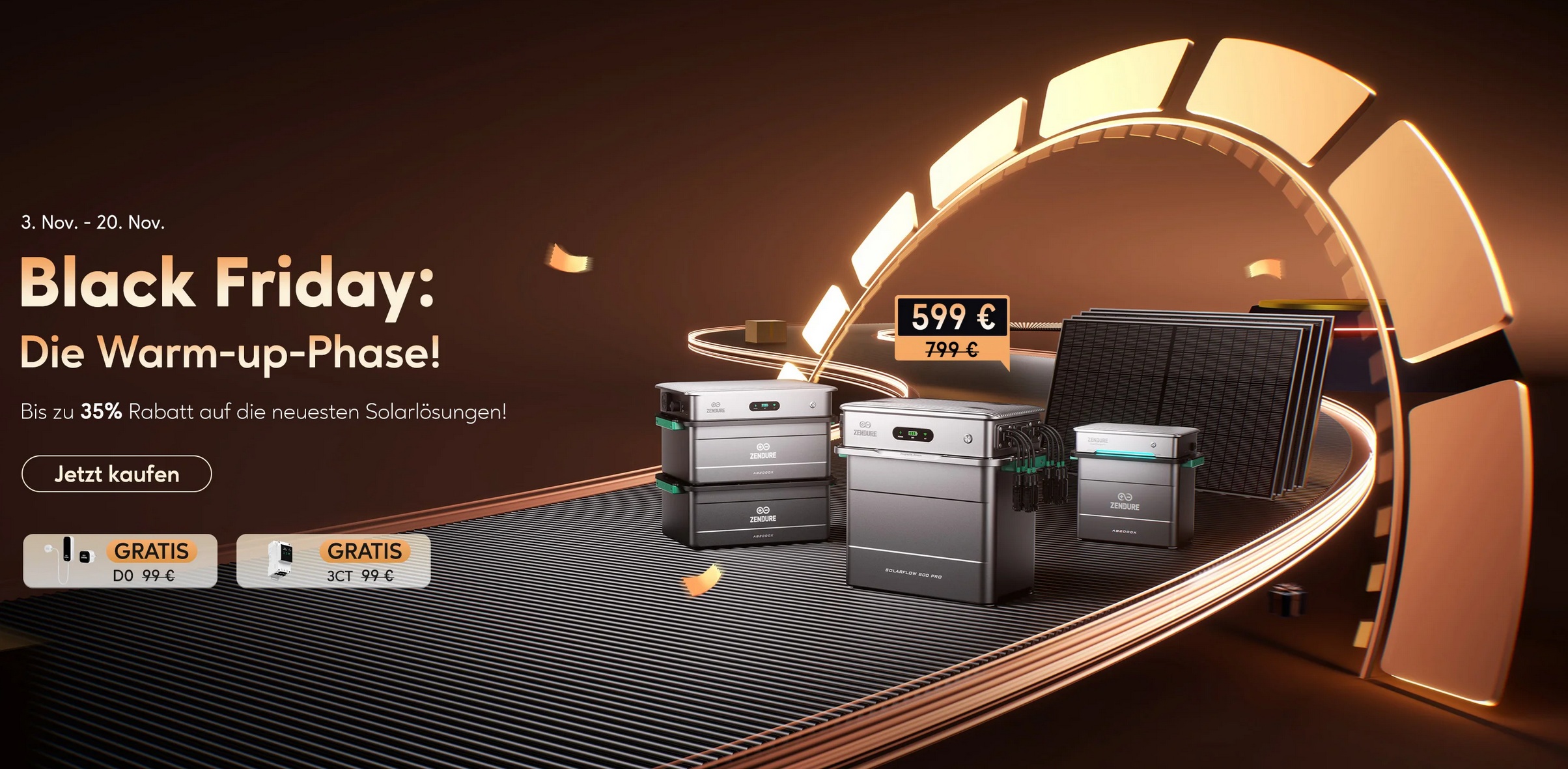 In den Zendure-Black-Friday-Wochen erhaltet ihr das Speichersystem bereits ab 599€ inkl. Versand und somit rund 200€ günstiger als zum Marktstart. Noch interessanter ist das Set mit vier 430W Solarmodulen für nur 799€. Somit zahlt ihr pro Solarmodul nur einen Aufpreis von 50€. Mit dem Gutscheincode 9ZMW7B spart ihr nochmals 5% auf das Solarflow 800 Pro. Das Set bekommt ihr hingegen für nur 700€ mit dem automatischen Code “BLACKFRIDAY99“!