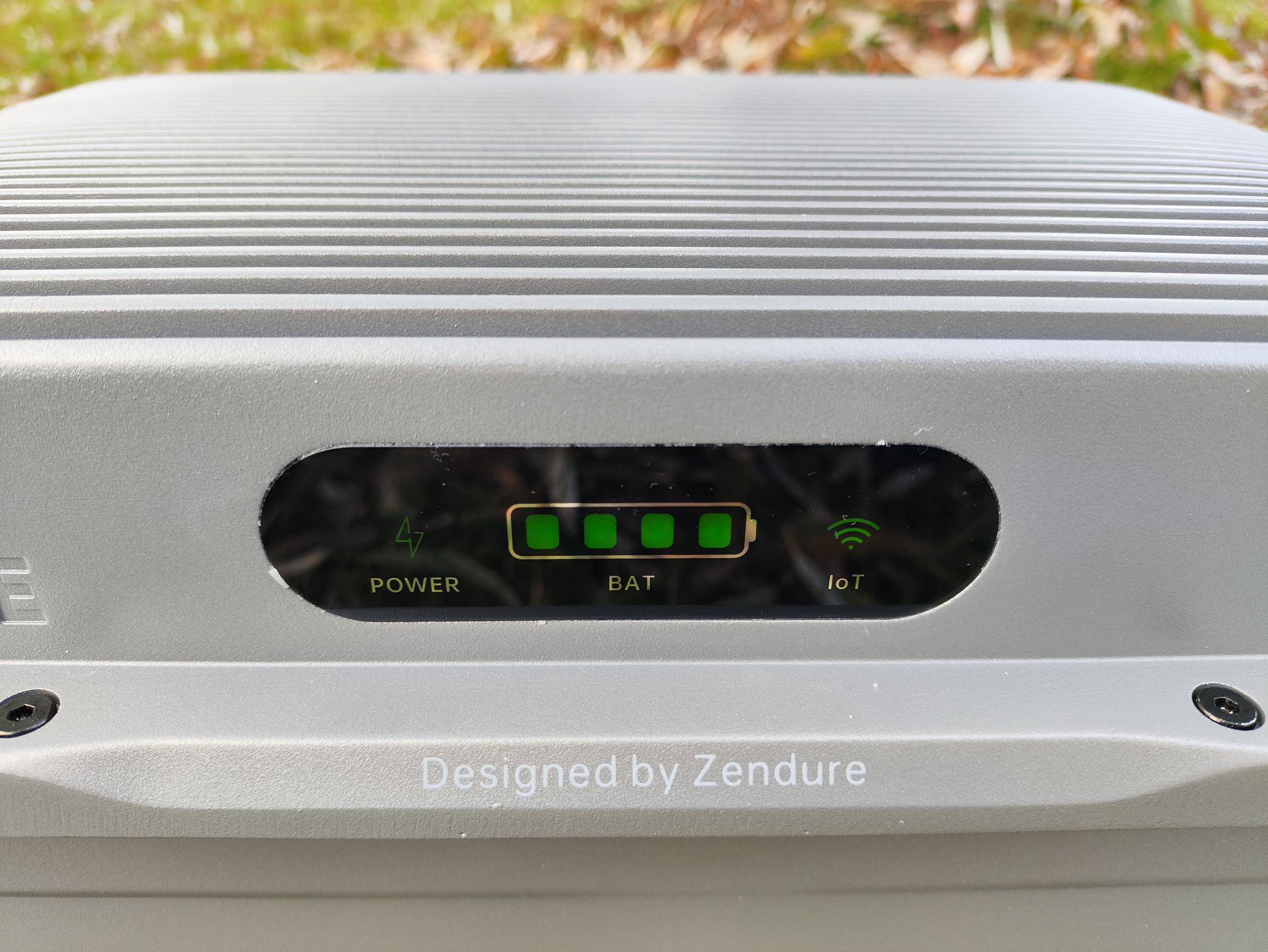 In der Front verbaut Zendure ein kleines Display, das euch Informationen zum Betriebszustand, der Akkukapazität (4-Balken-Anzeige) und dem WLAN-Empfang bietet. Der mehrfach belegte Taster (an/aus/WiFi-Reset) auf der rechten Seite ist das einzige manuelle Steuerelement des Speichersystems.