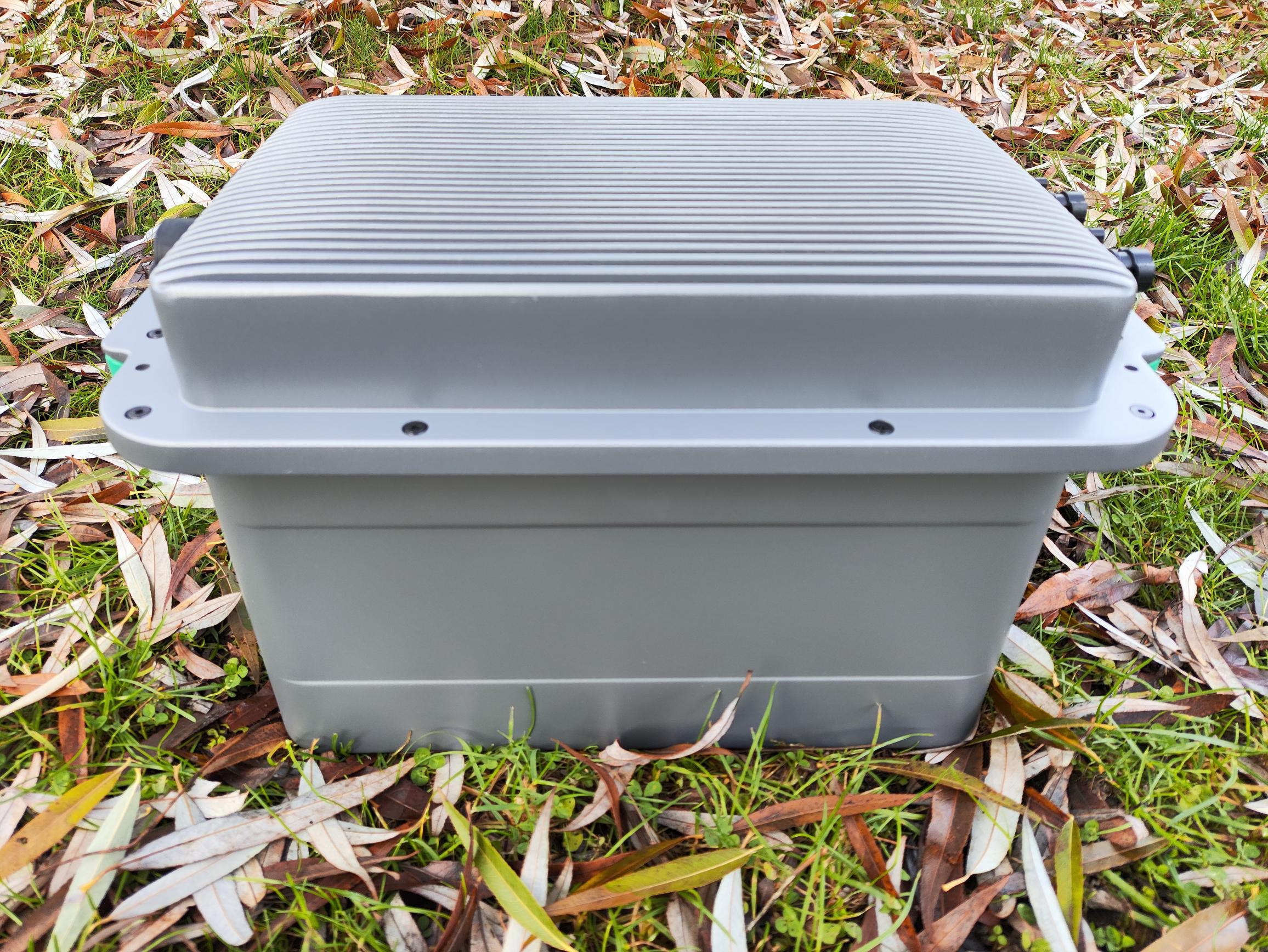 Klein, kompakt und handlich präsentiert sich das Solarflow 800 Plus. Mit Abmessungen von 393 x 236 x 242 Millimeter und einem Gewicht von 21,1 Kilogramm hat das Solarflow 800 Plus gegenüber der Pro-Variante ordentlich abgespeckt. Das System ist trotz gleicher Kapazität insgesamt 37% kleiner und 4,8 Kilogramm leichter geworden. Optisch orientiert sich das System an der bisherigen Produktpalette. Das Gehäuse besteht vollständig aus Aluminium, ist hochwertig verarbeitet und bietet auf der Oberseite einen großflächigen Kühlkörper. Das abgerundete Design gefällt uns optisch immer noch hervorragend, auch wenn es nicht unbedingt wohnzimmertauglich ist.