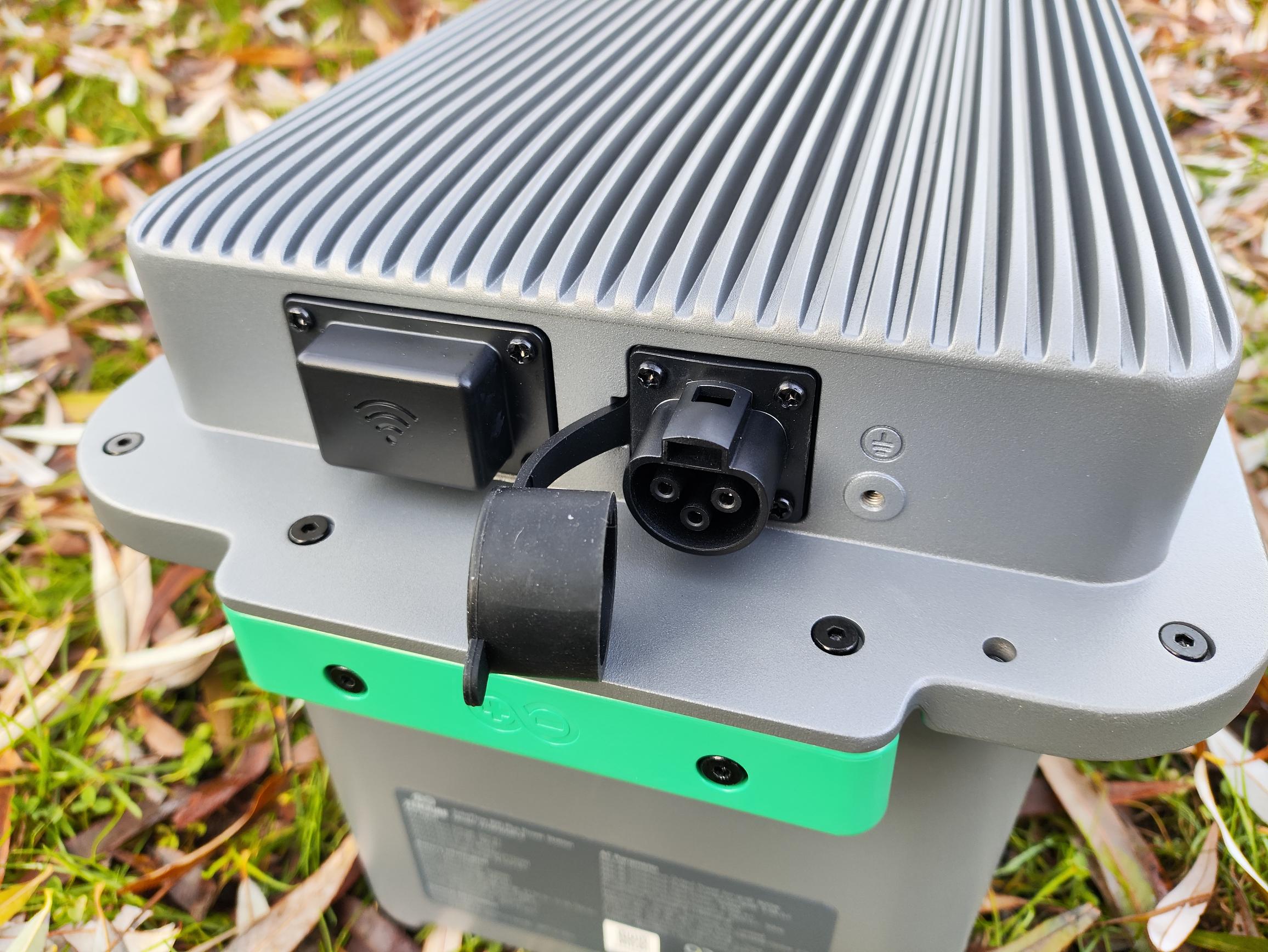 Auf der rechten Seite befinden sich die Buchse für das Netzanschlusskabel und die WLAN-Antenne. Weiterhin kann neben dem Netzanschluss ein Potenzialausgleichskabel angeschlossen werden. Auf der linken Seite sind die MC4 PV-Eingänge verortet. Diese sind nicht wie bei früheren Systemen per Kabel aus dem Gehäuse herausgeführt, sondern starr eingelassen. Auf eine Off-Grid-Steckdose für den Inselbetrieb verzichtet Zendure bei dem 800 Plus vollständig. Das System wurde ausschließlich für den Einspeisebetrieb konzipiert.