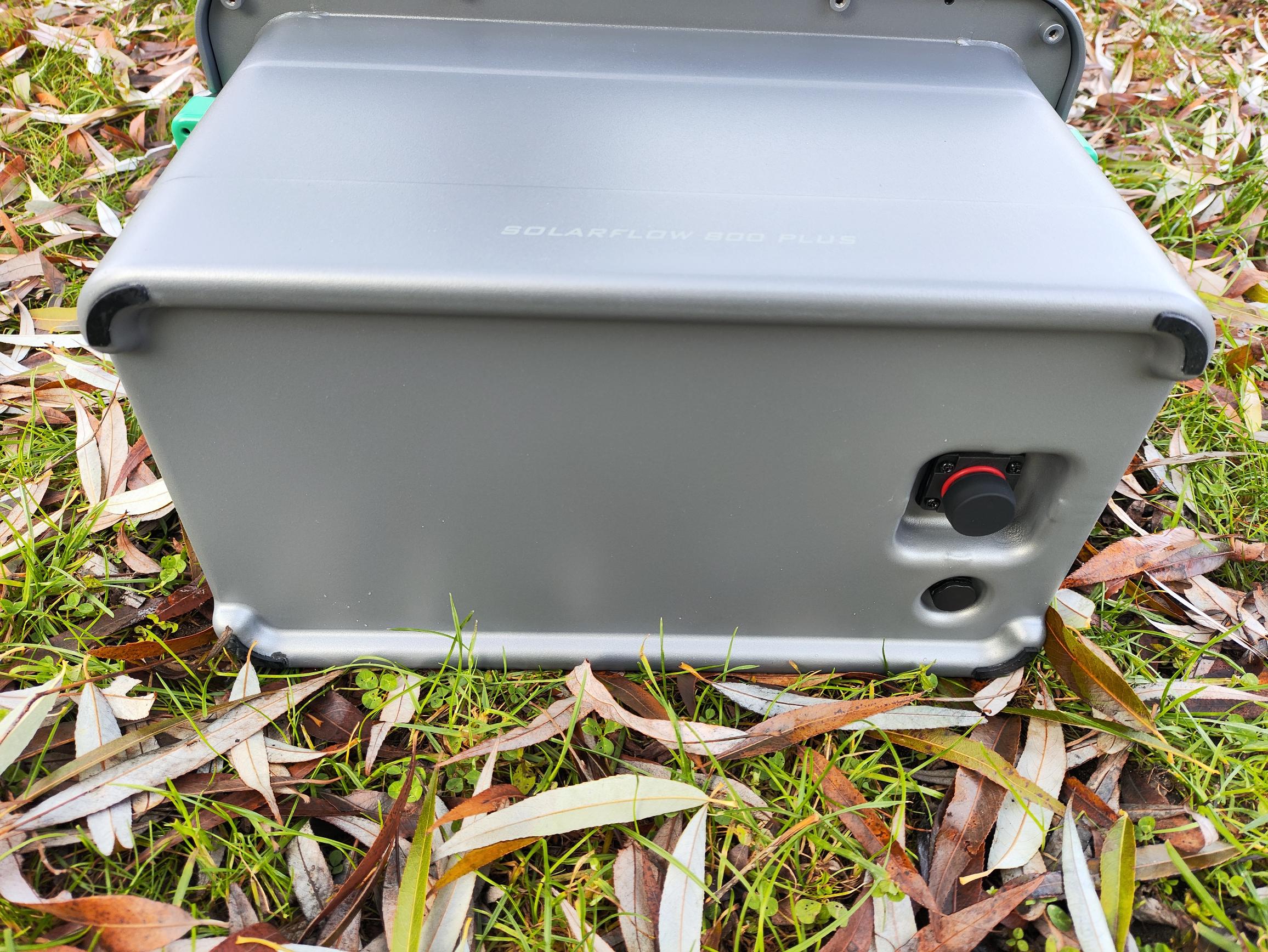 Auf der Unterseite befindet sich der bekannte Anschlussport für die Zusatzakkus. Das Solarflow 800 Plus ist mit der gesamten bisherigen Akkuserie (AB1000/S/2000S/X) kompatibel. Wird ein Zusatzakku verwendet, entfernt ihr einfach die Schutzkappe und stapelt das Solarflow 800 Plus auf den Zusatzakku. Neu hinzugekommen ist ein Überdruckventil auf der Unterseite. Somit soll im unwahrscheinlichen Fehlerfall ein kontrolliertes Ausgasen der Akkuzellen ermöglicht werden.