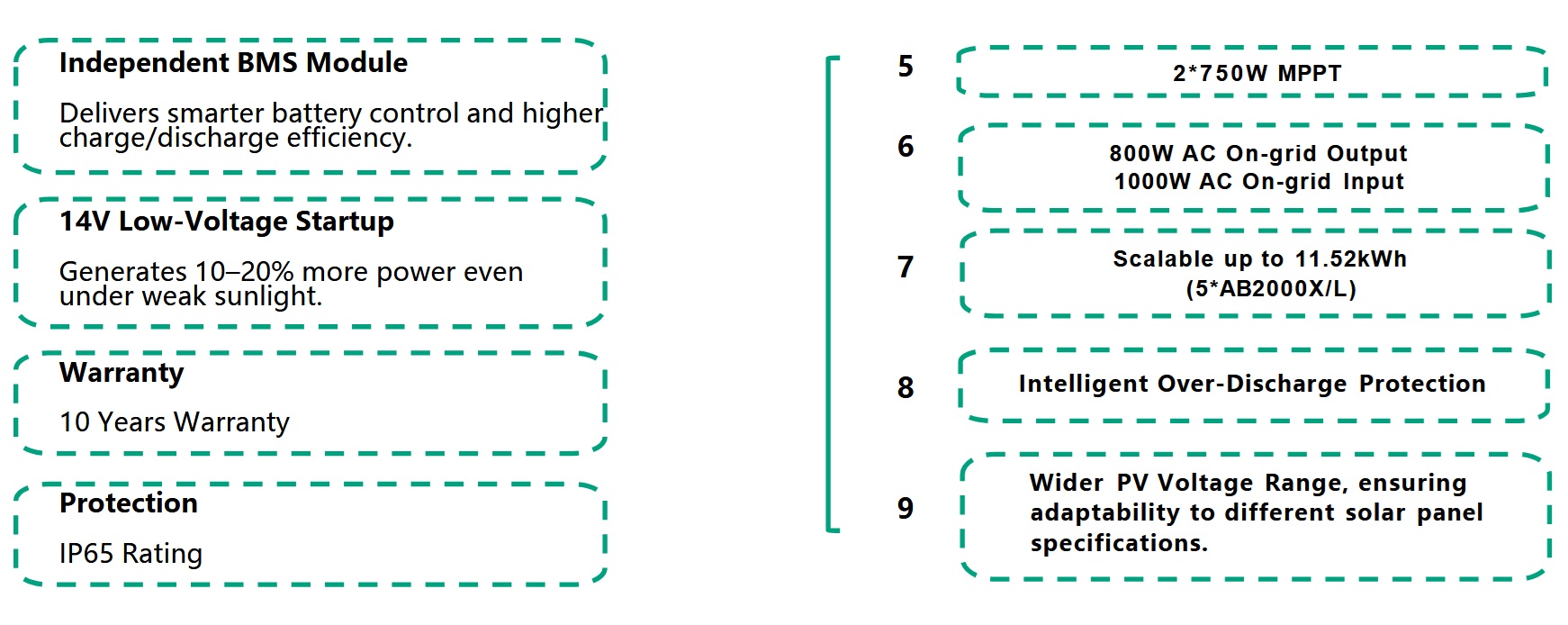 Die Kapazität bleibt wie gehabt bei 1.920Wh, die sich mit bis zu fünf AB2000 X/L Zusatzakkus auf 11.520Wh modular erweitern lässt. Auf der technischen Seite wurden alle Vorzüge des Solarflow 800 Pro übernommen. Das System bietet mit 14V eine extrem niedrige Startspannung, ist mit moderner GaN-Technologie ausgestattet, die einen hohen Wirkungsgrad ermöglicht, besitzt ein Aerosol-Brandunterdrückungssystem und kommuniziert im lokalen WLAN mit eurem Smart-Meter (Shelly, Ecotracker, Zendure Smart-Meter).